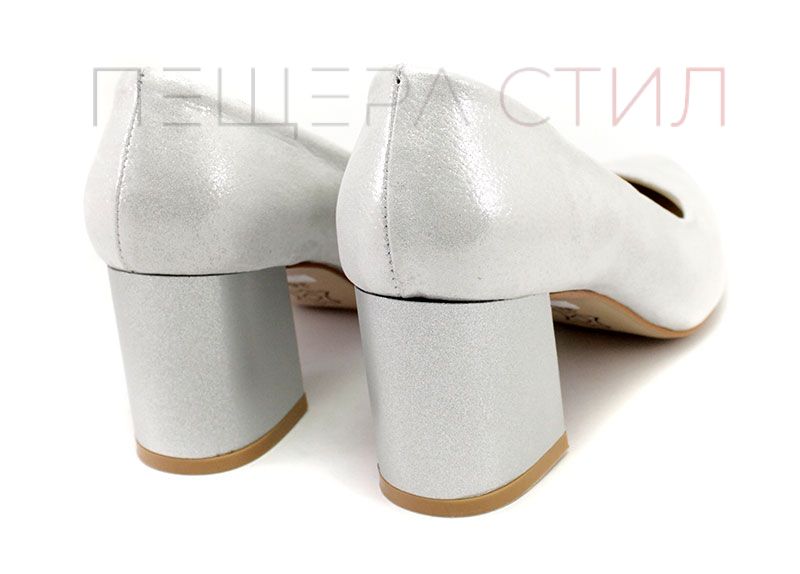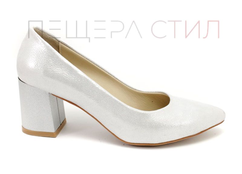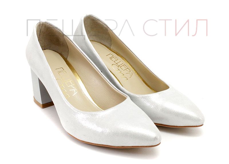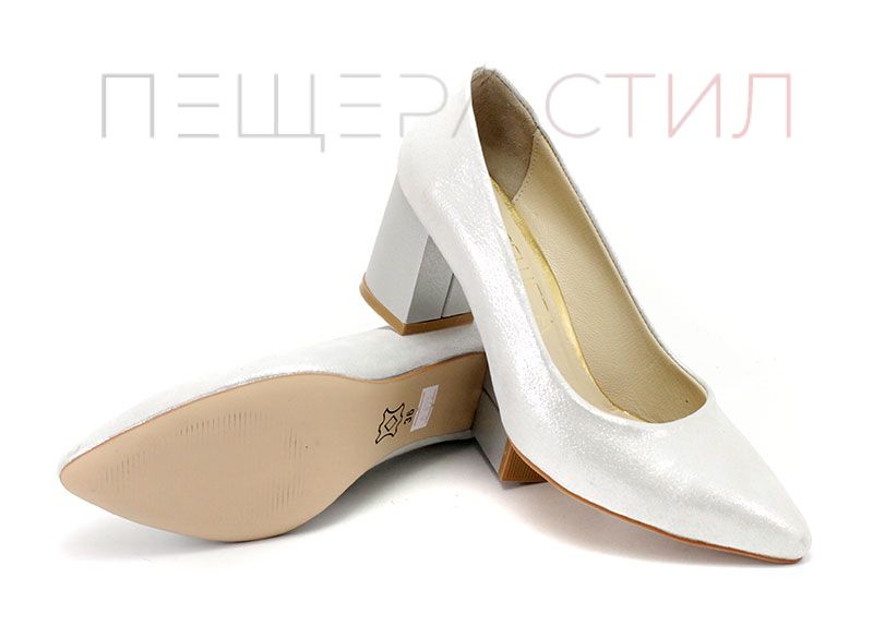 Pantofi eleganti din piele naturală cu efect de satin alb 873 B