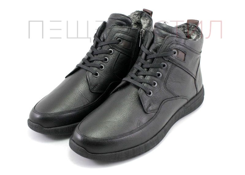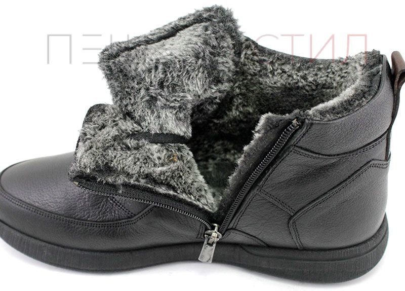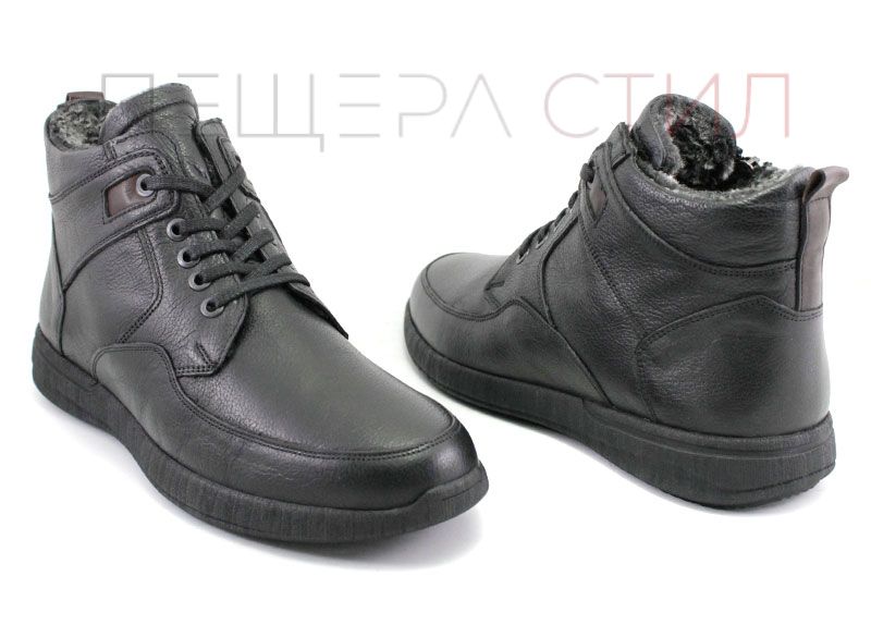 Ghete barbati din piele naturală de înaltă calitate, de culoare neagră. Căptușeala de iarnă din interiorul modelului contribuie cu un plus de căldură în zilele de iarnă. Talpa de iarnă este fabricată din cauciuc termo adevărat. Datorită acestuia, modelul garantează mai multă rezistență. Fermoarul lateral îl face mai ușor de pus.
