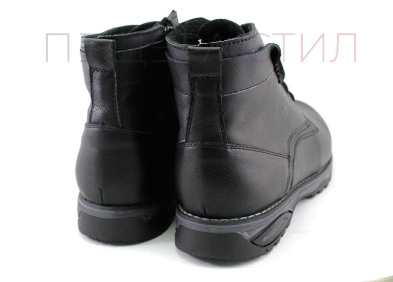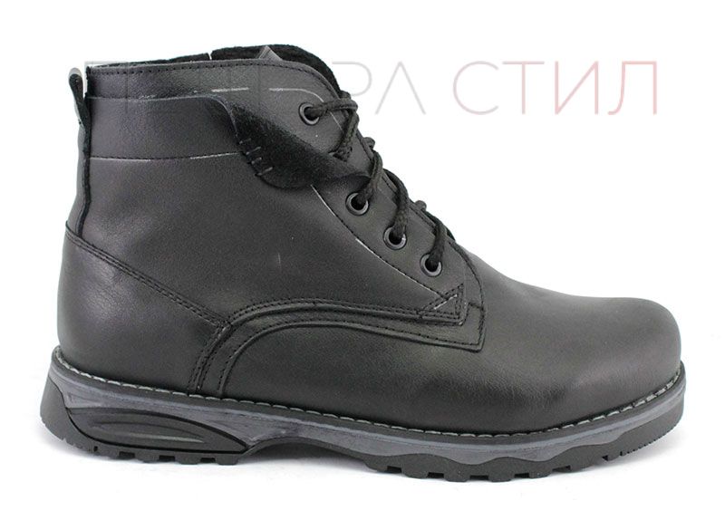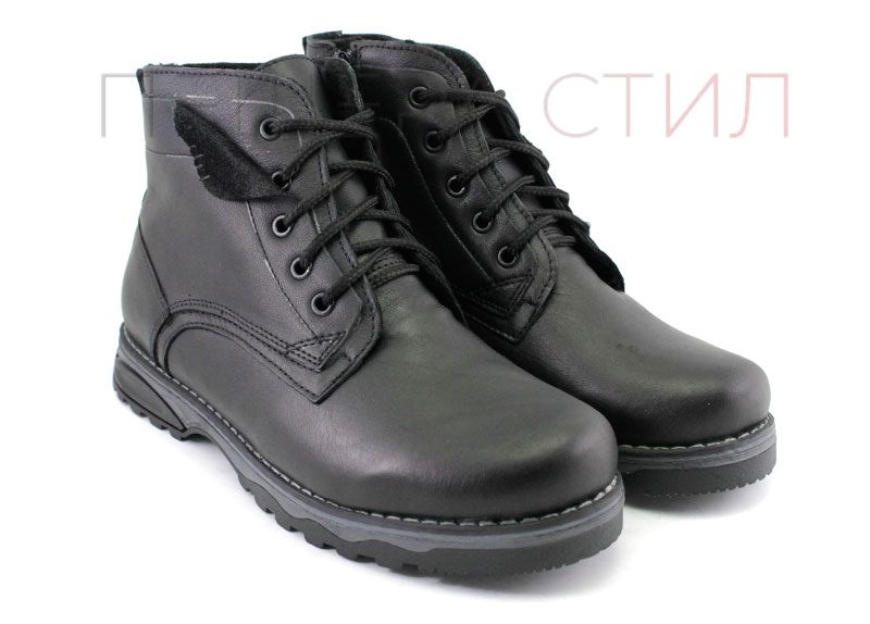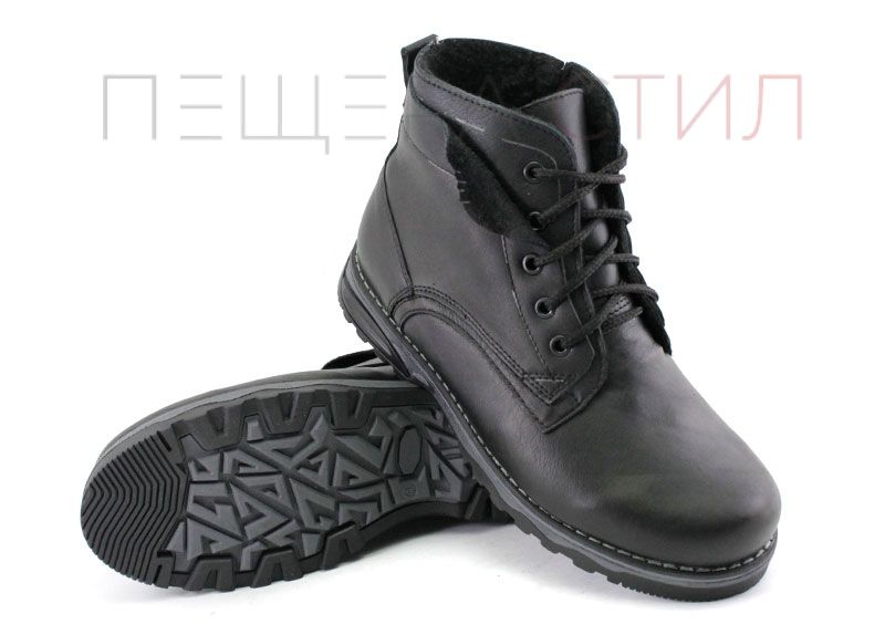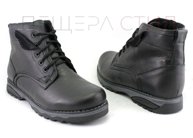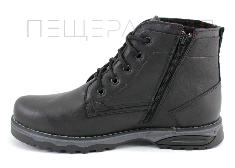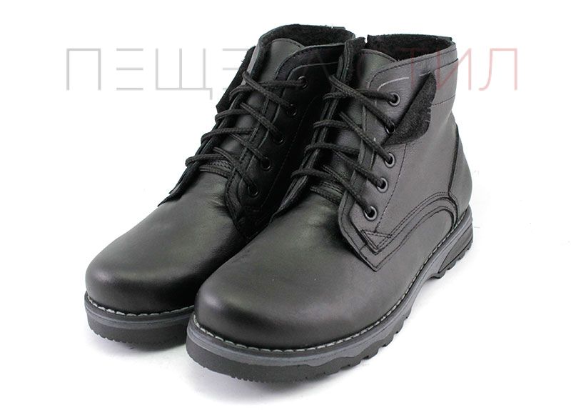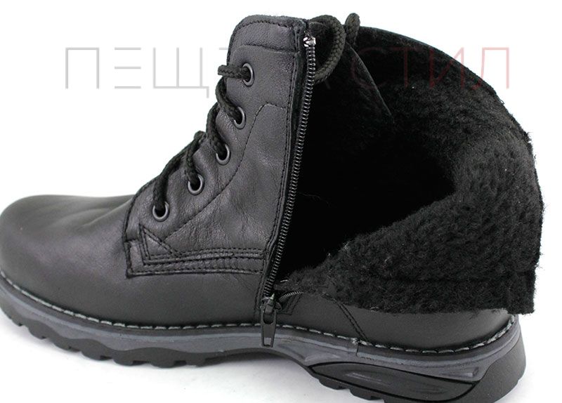 Ghete barbati din piele naturală pe talpă plană cu șireturi și fermoar și căptușeală caldă, de iarnă. Culoare neagră.