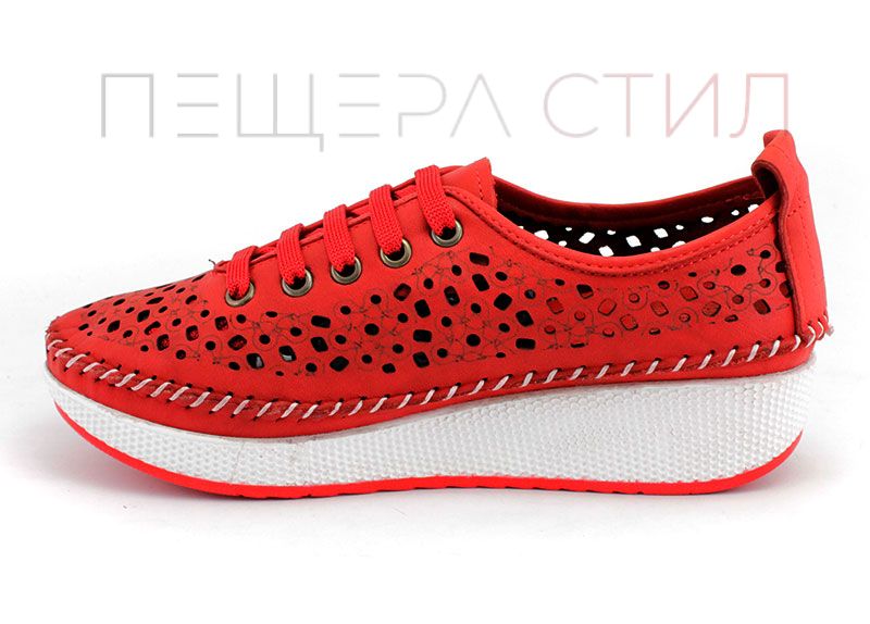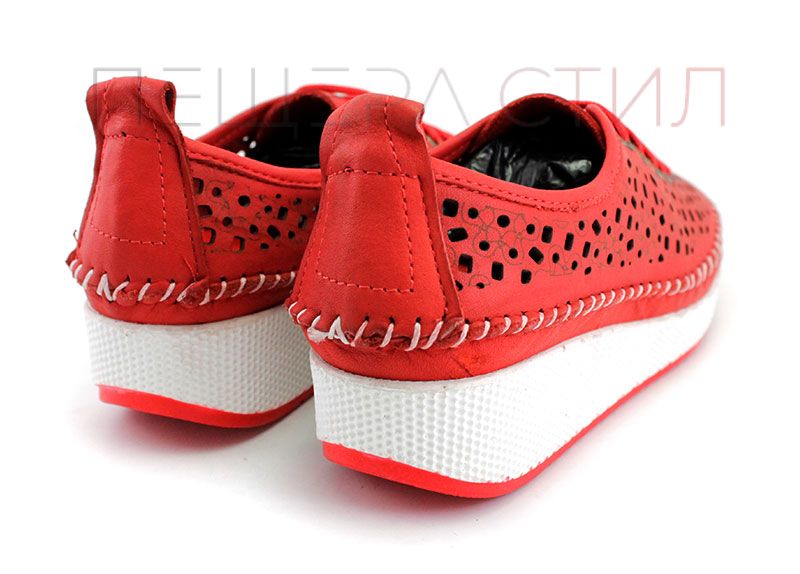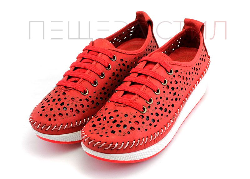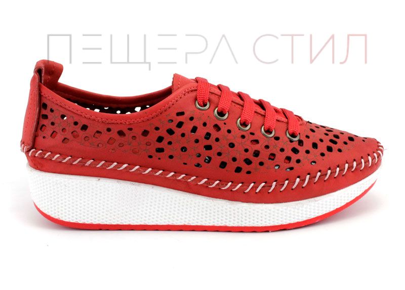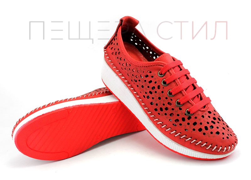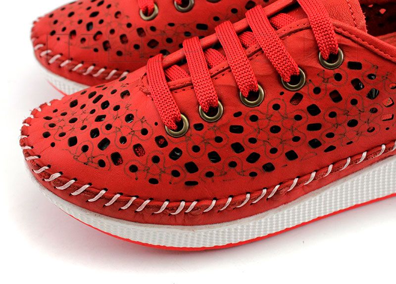 Femei pantofi de vara din piele naturala cu perforație în roșu - Model de Rickel 860