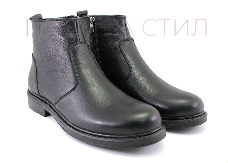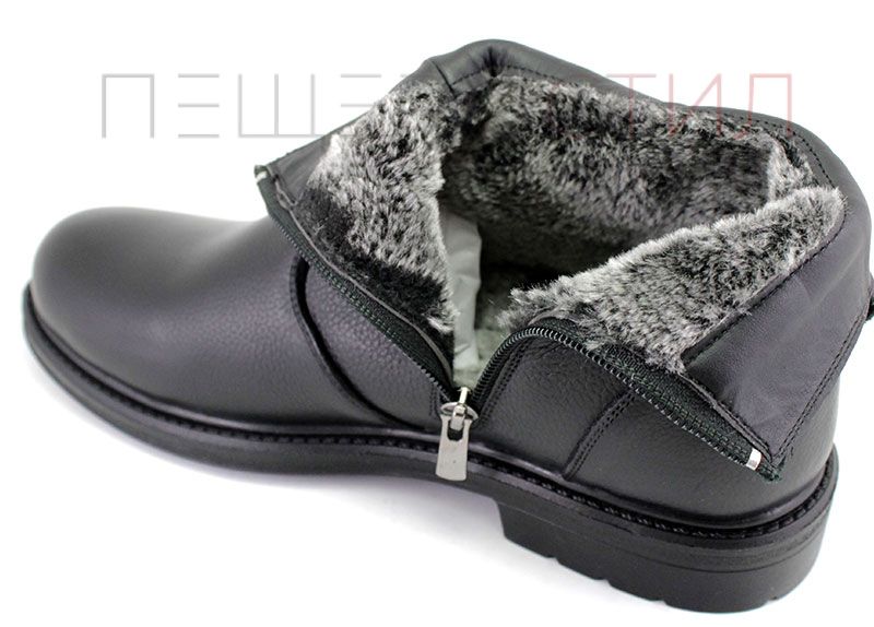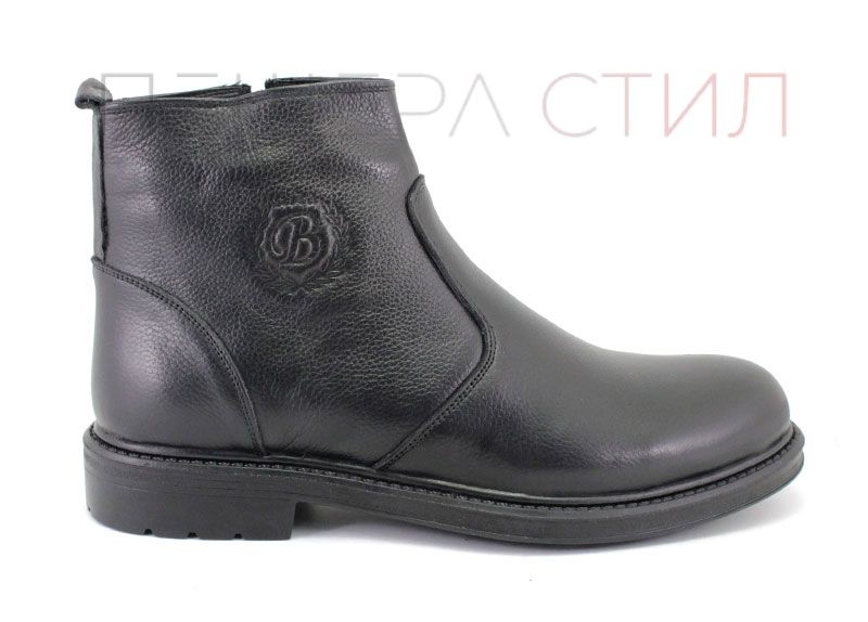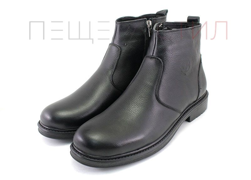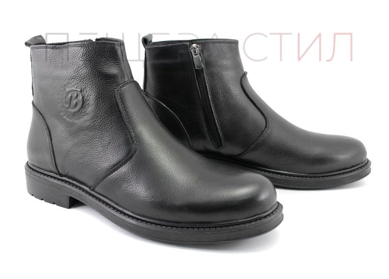 Ghete barbati cu fermoar lateral din piele naturals, rezistenta la culoare, pe cauciuc, talpa de iarna.