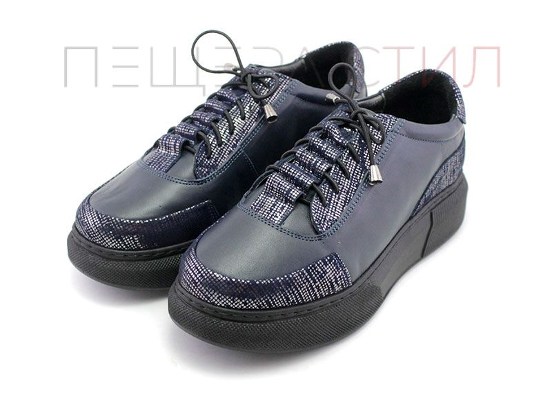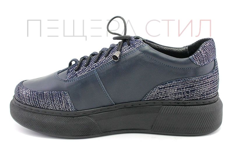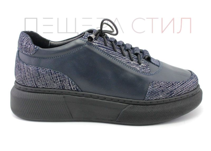 Pantofi casual de damă cu platformă joasă din piele naturală combinată cu piele naturală, satinată, de culoare argintie. Sireturile sunt elastice si permit incaltarea si scoaterea foarte rapida fara a se dezlega sau desface. Piciorul este cusut. Branțul și căptușeala sunt, de asemenea, din piele naturală.