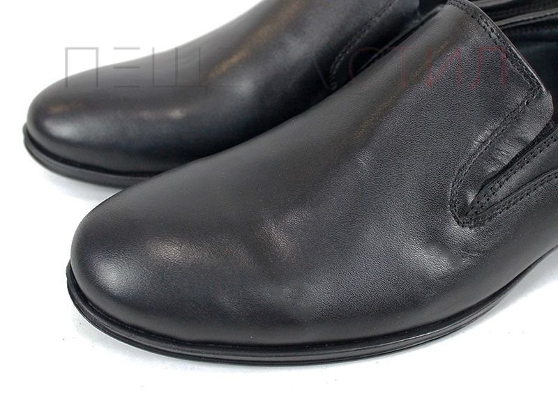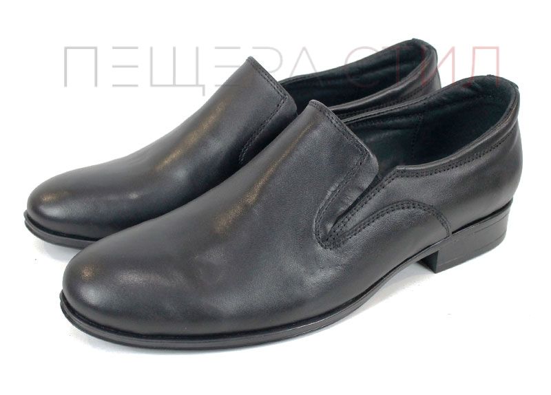 Pantofi formali pentru bărbați din piele nappa neagră. Un model curat, fără șireturi, cu talpă ușoară, lățime mare de vârf și căptușeală și branț din piele naturală.