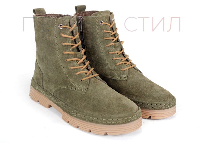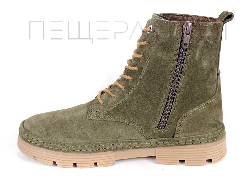Pantofi tip clarks pentru dame, din piele velur verde, cu șireturi și fermoar, talpă comodă din cauciuc cusut.