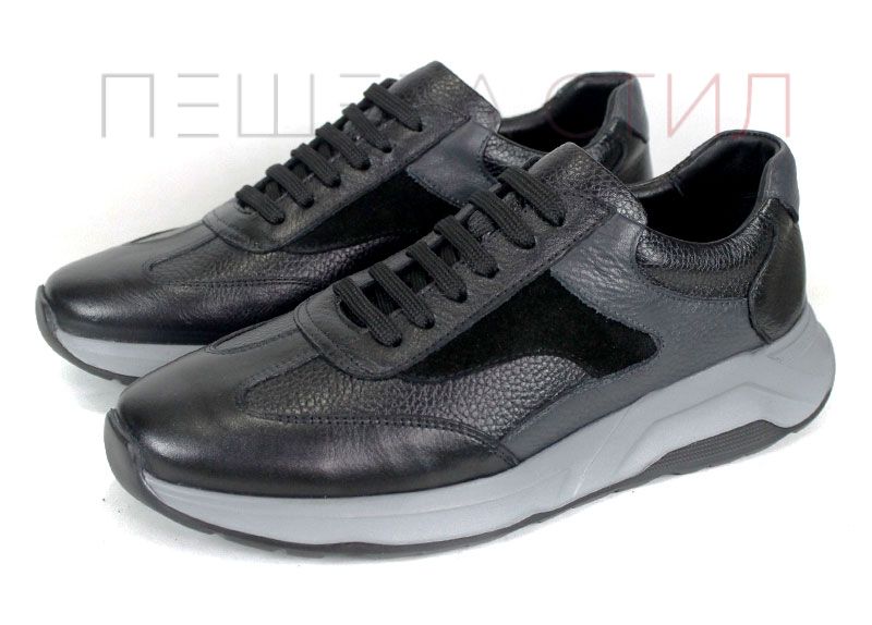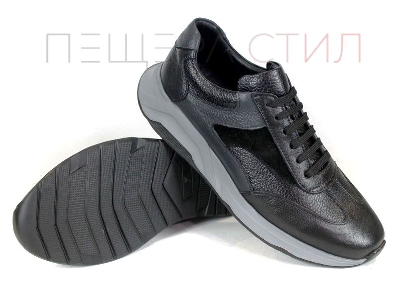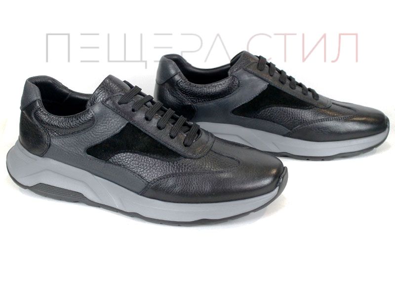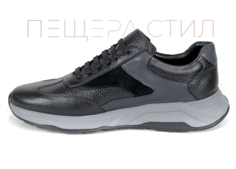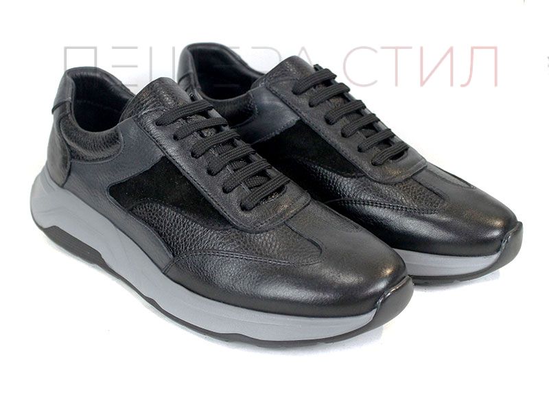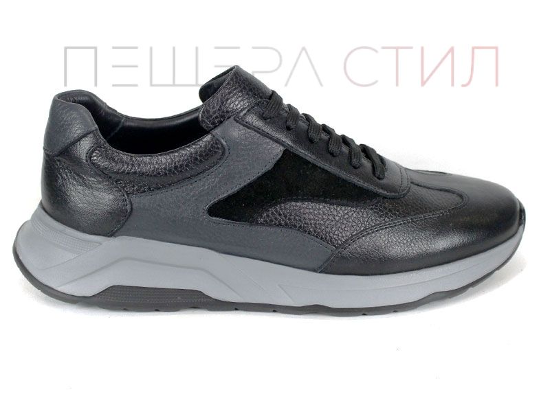 Élan Gris sunt pantofi sport bărbătești realizați dintr-o combinație de piele naturală (napa și floater) și velur moale. Design elegant în negru și gri, completat de o talpă ușoară și flexibilă. Căptușeală și branț din piele naturală pentru confort maxim.