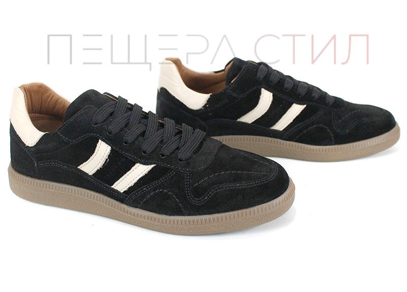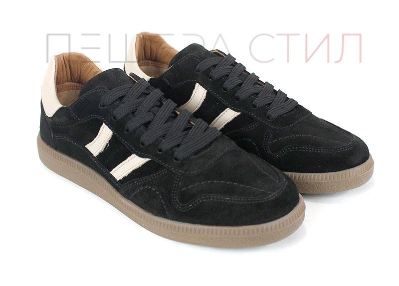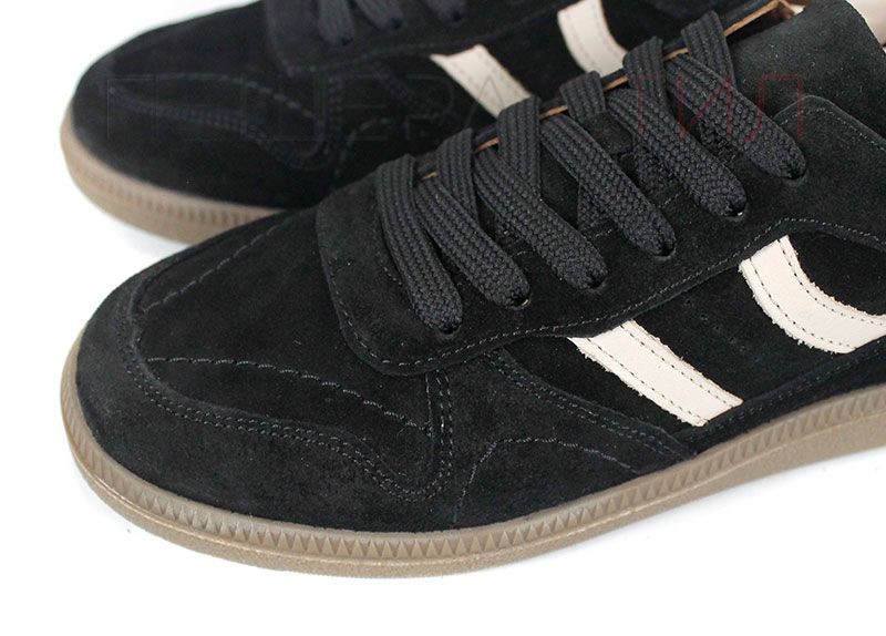 Pantofi sport retro damă Auria Tempo din piele întoarsă naturală – negru cu accente bej