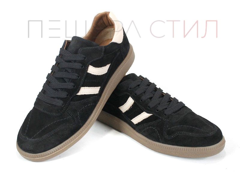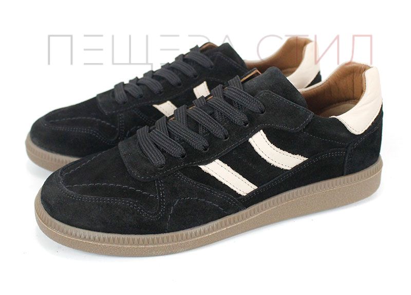 Auria Tempo sunt pantofi sport retro pentru dame, realizați din piele întoarsă fină de culoare neagră, combinați cu detalii din piele bej. Un model clasic reinterpretat modern, cu talpă flexibilă din cauciuc și branț din piele naturală.
