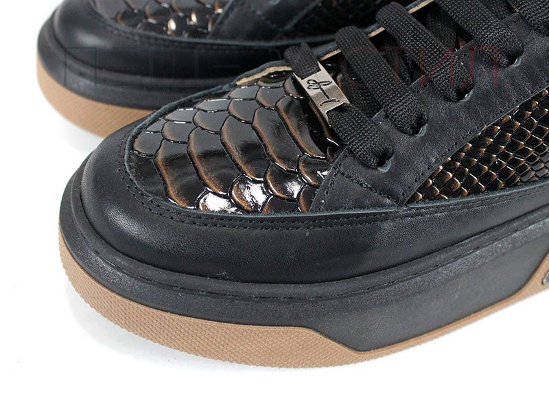 Materiale premium – piele naturală și lac cu imprimeu de șarpe.