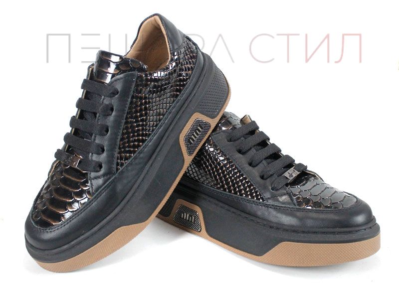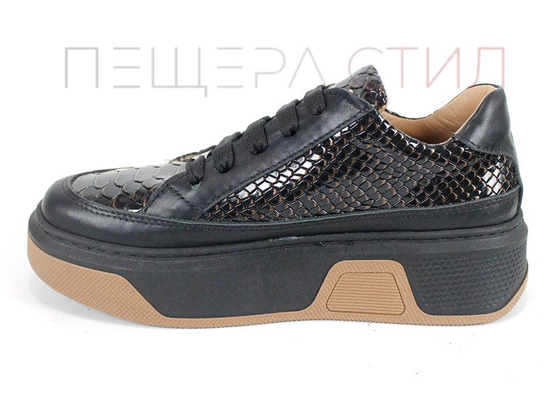 Modelul Vita Elegante în negru aduce un plus de rafinament garderobei urbane. Combină pielea naturală cu lacul cu imprimeu de șarpe, pentru o imagine puternică și de impact.