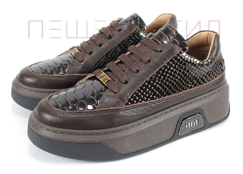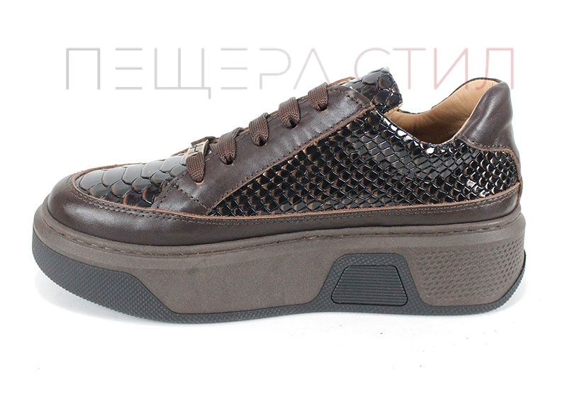 Vita Elegante este un model premium ce combină eleganța modernă cu calitatea superioară. Realizați din piele naturală și lac cu imprimeu de șarpe, în nuanțe rafinate de maro, pantofii se disting prin talpa groasă cusută și interiorul din piele naturală, oferind confort deosebit.