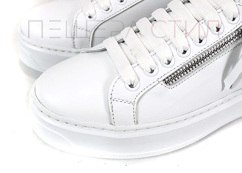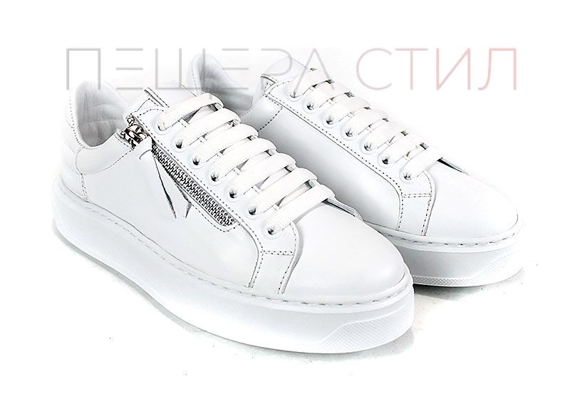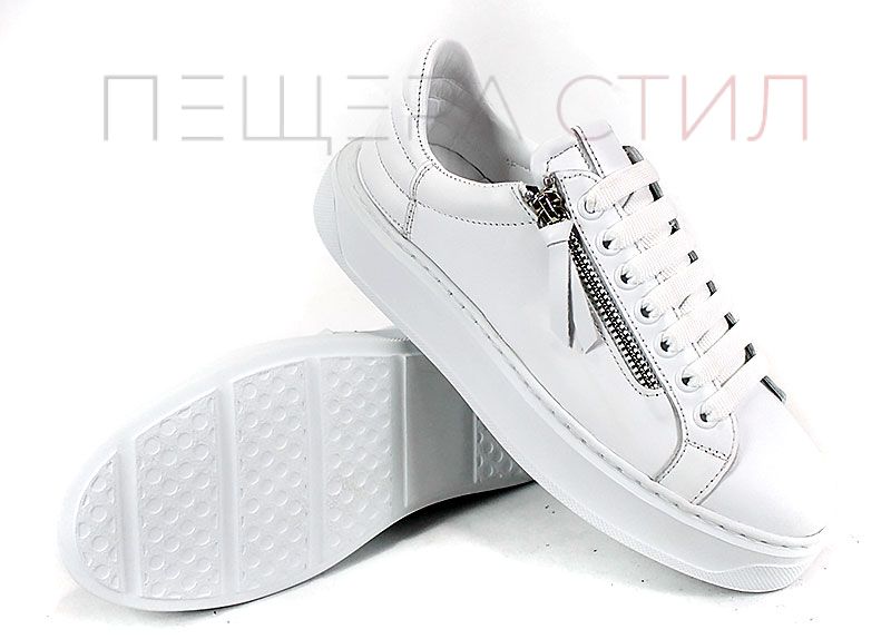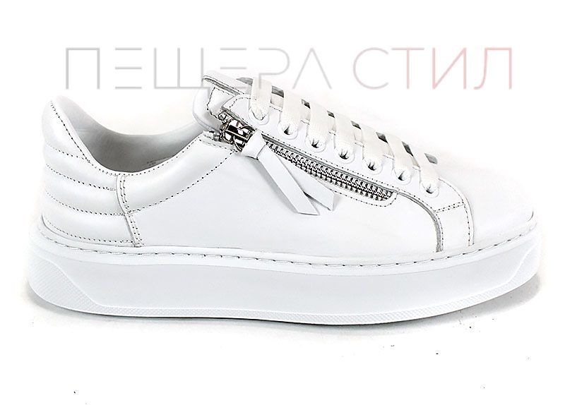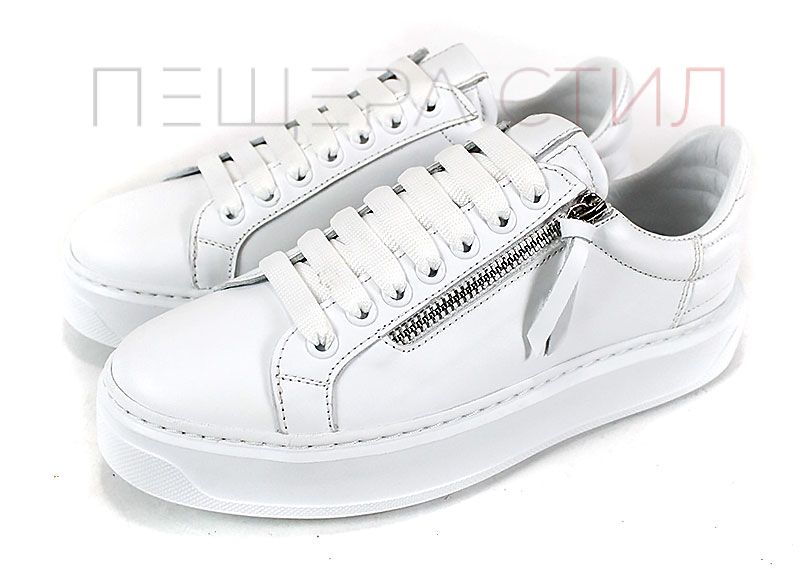 Sneakers damă Aero Bianca – piele naturală, alb cu fermoar