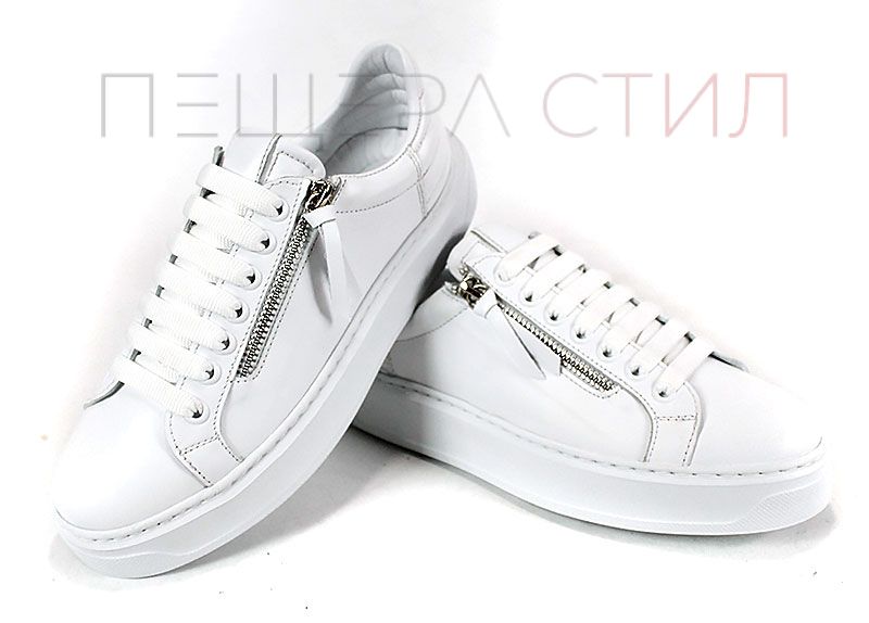 Sneakers eleganți din piele naturală, talpă ușoară și fermoar lateral pentru încălțare rapidă și confort zilnic.