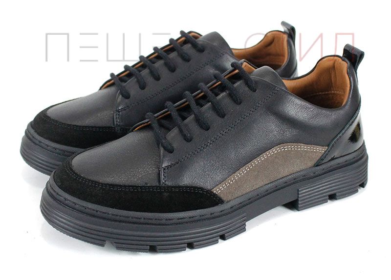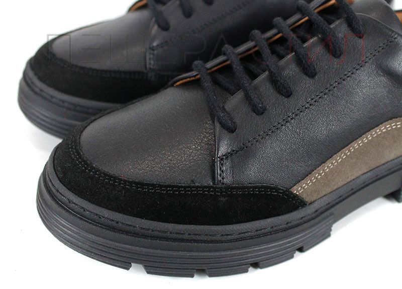 Pantofi casual damă Terra Nova din piele naturală neagră și piele întoarsă – accente vizon