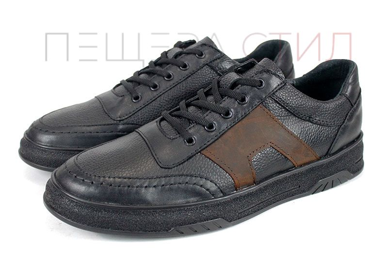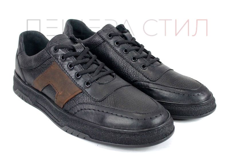 Pantofi casual pentru bărbați realizați din combinație de piele naturală – piele netedă neagră, piele floater și piele crazy maro. Model confortabil, cu talpă flexibilă și branț din piele naturală. Potriviți pentru ținute zilnice sau business casual.