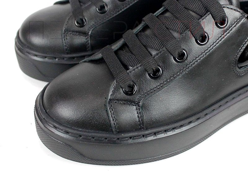Sneakers damă Notte Pura – piele naturală și lac, culoare neagră