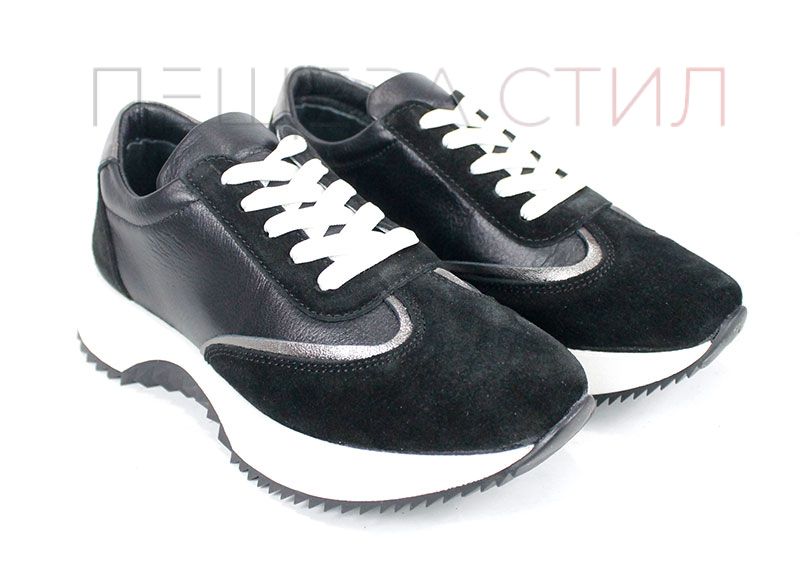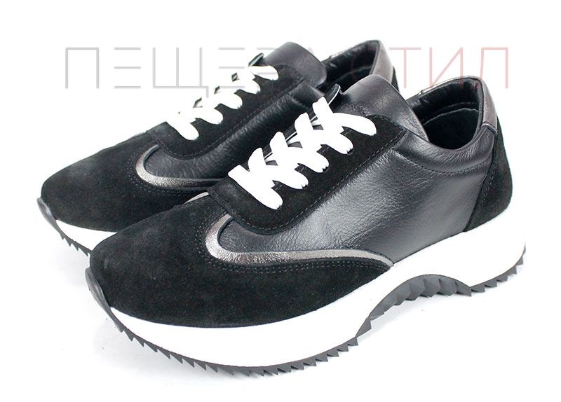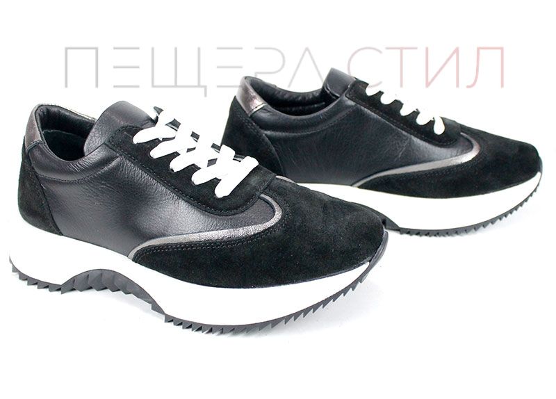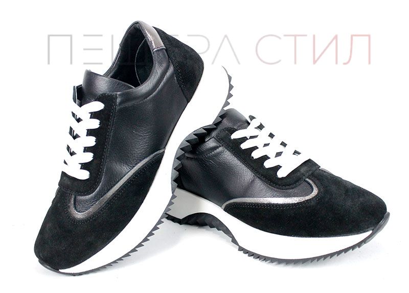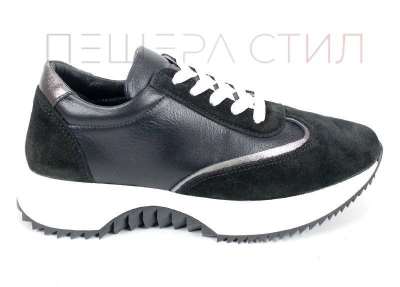 Modelul Eleganza Viso este o noutate în colecția de sneakers damă – combinație de piele naturală și velur negru, cu căptușeală și branț din piele naturală. Moderni, comozi și versatili.