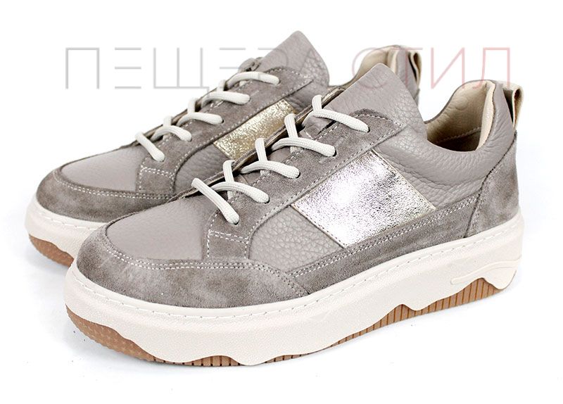 Pantofii sport pentru dame Avileta sunt creați pentru femeile care îmbină confortul zilnic cu eleganța subtilă. Exteriorul aduce împreună pielea vizon floter și velurul în aceeași nuanță, iar inserția aurie adaugă un accent rafinat și modern.