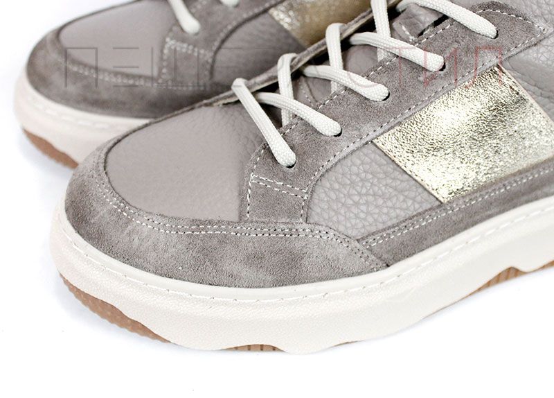 Pantofi sport damă Avileta – piele vizon și velur cu detaliu auriu, interior piele