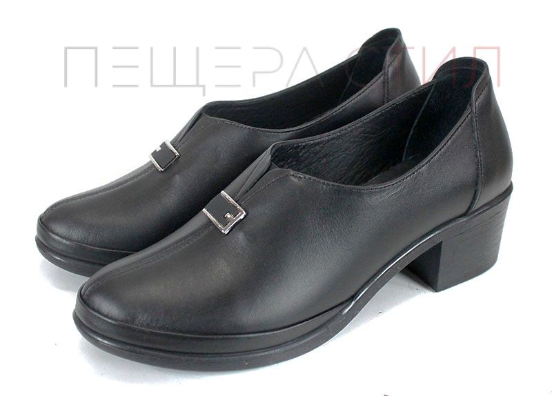 Pantofi damă Lusso Forte din piele naturală neagră, cu toc mediu