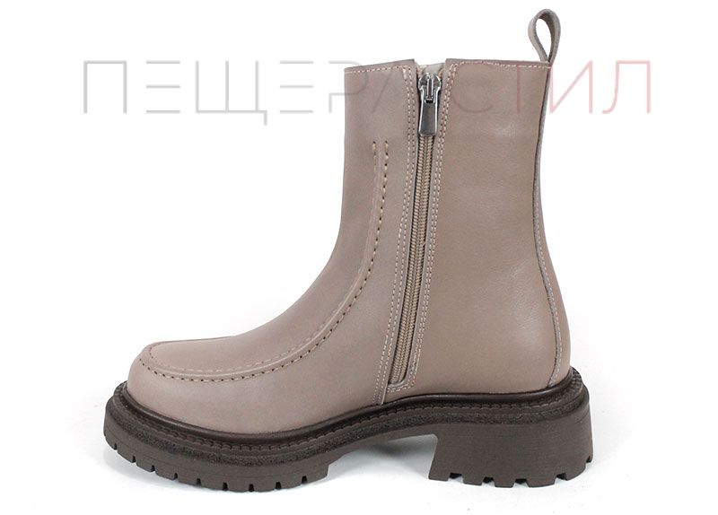 Botine elegante din piele naturală, într-o nuanță rafinată de gri-bej (vizon). Modelul Luce Velluto impresionează prin designul minimalist, inspirat de mocasin, și prin echilibrul perfect între rafinament și funcționalitate. Interiorul moale din pluș oferă o senzație plăcută de căldură, iar talpa joasă, stabilă și cu profil de iarnă asigură confort la fiecare pas. O alegere ideală pentru femeia modernă, care apreciază eleganța practică.