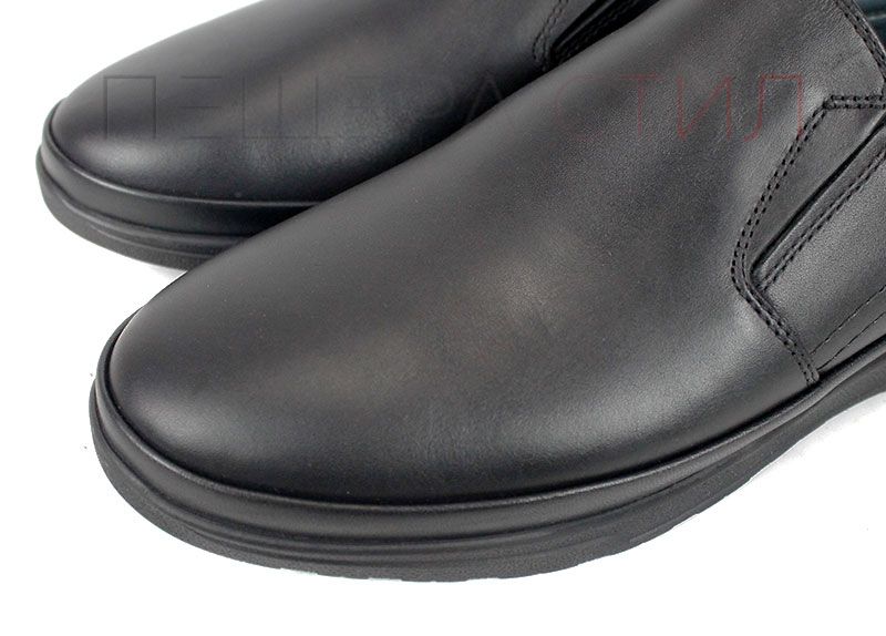 Modelul Cefo este o propunere nouă pentru stilul de zi cu zi – pantofi bărbătești din piele naturală neagră, fără șireturi, cu branț și căptușeală din piele naturală pentru confort maxim.