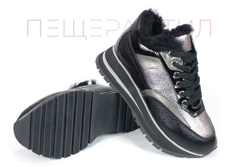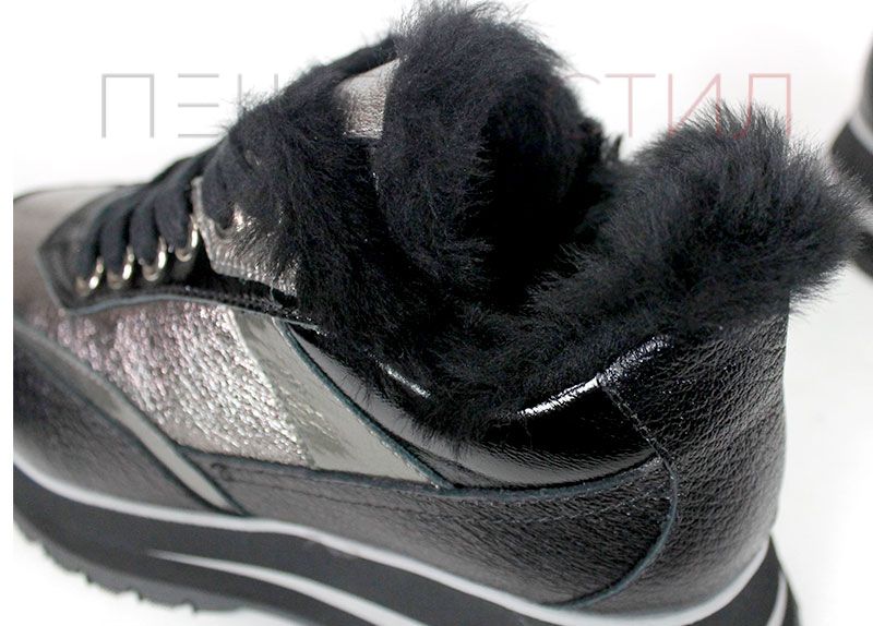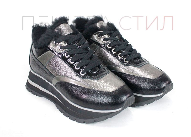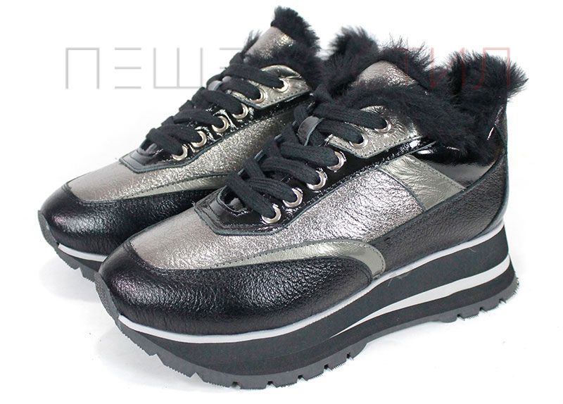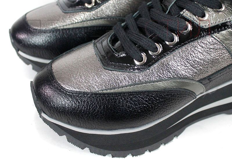 Pantofi sport dama Nova Stella din piele naturală – negru și platină