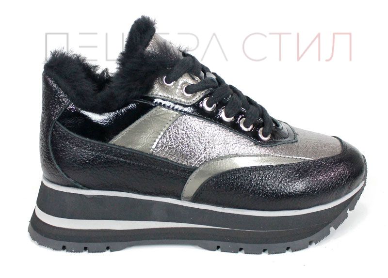 Pantofii sport Nova Stella sunt creați pentru femeile care doresc confort fără a renunța la stil. Combinația rafinată de piele naturală neagră și accente platină aduce un look contemporan și versatil, potrivit atât pentru ținute casual, cât și pentru combinații mai elegante.