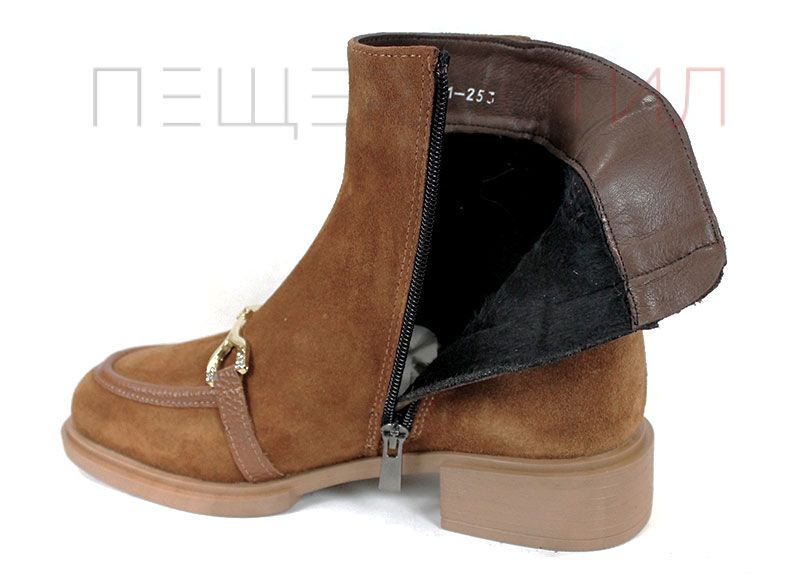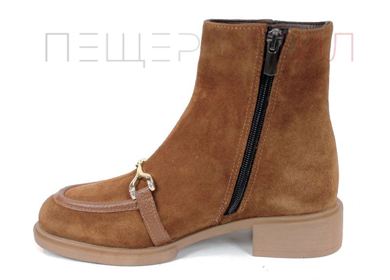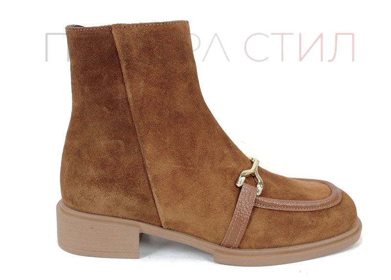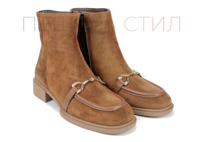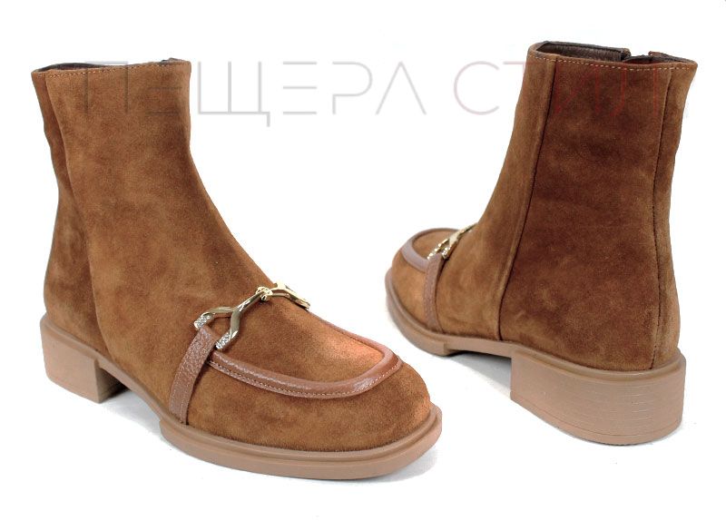Ghete elegante din velur natural, în nuanța modernă scorțișoară. Talpă comodă cu toc jos, perfecte pentru zilele active și ținute casual-chic. Un design rafinat, completat de accesoriu metalic stylish.