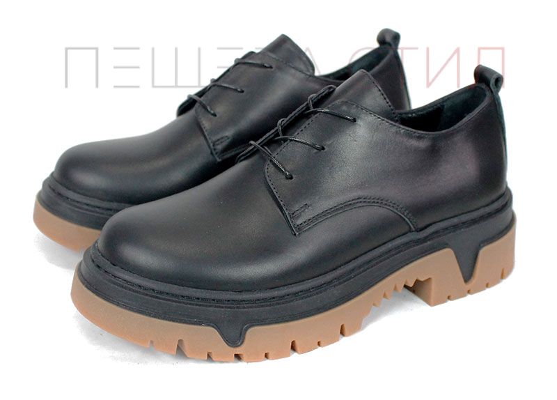 Talpa solidă, cusută și bicoloră – maro închis și caramel – aduce stabilitate, durabilitate și un accent urban distinct.
