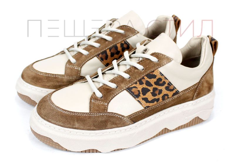 Pantofi sport damă Avileta – piele vizon și velur cu detaliu auriu, interior piele