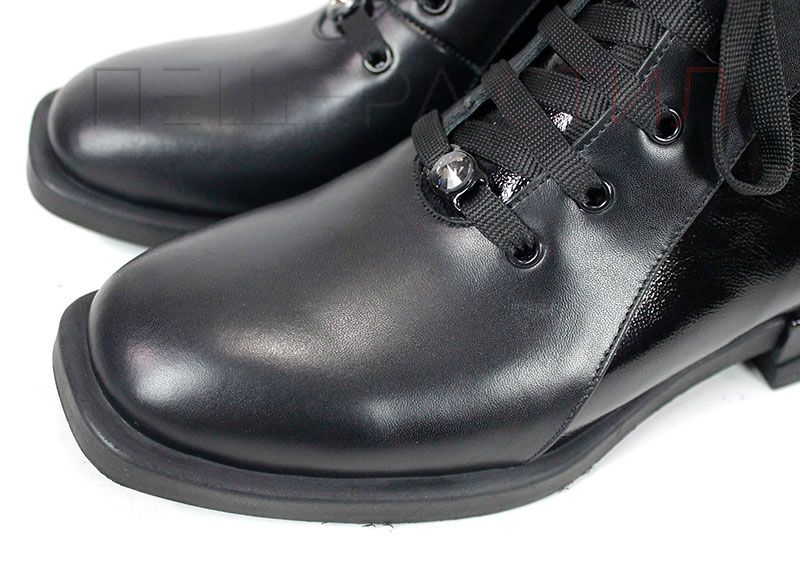 • partea din față - piele naturală, lac