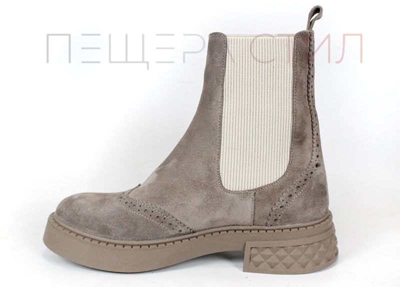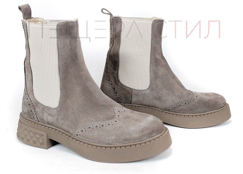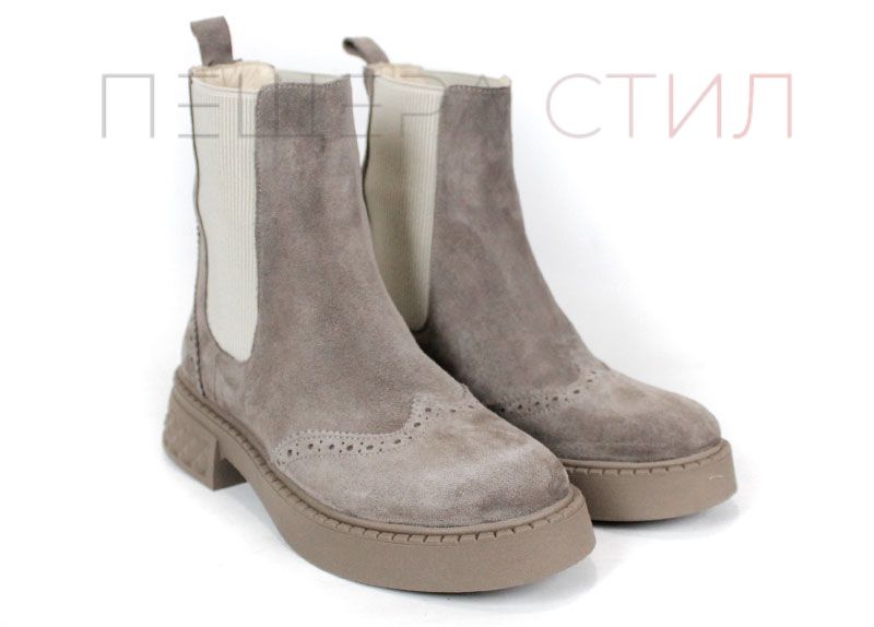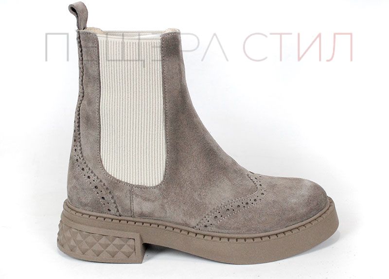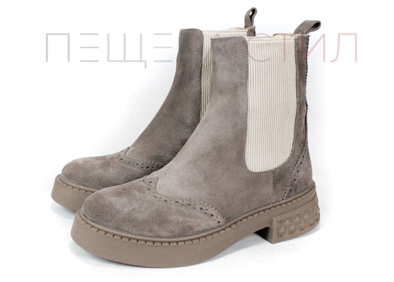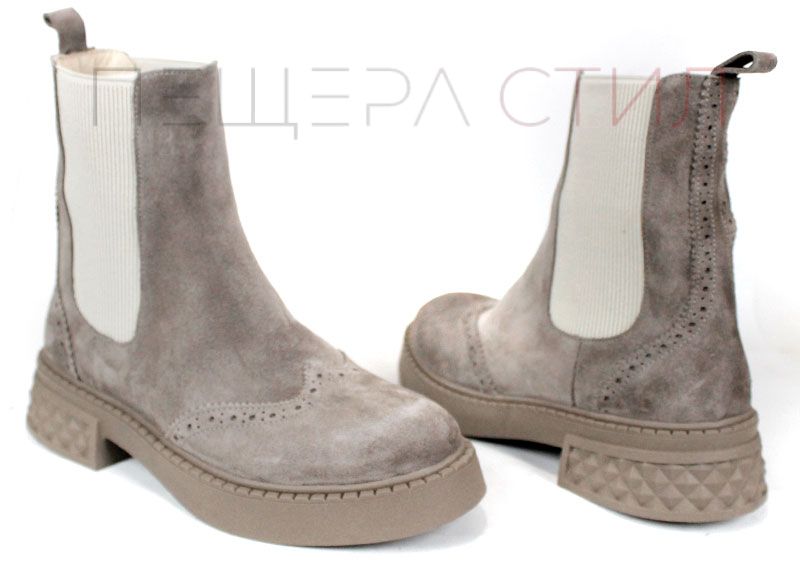 Ghete elegante Modo Serein din velur natural. Model tip Chelsea cu elastic lateral, detalii Oxford și talpă groasă, perfectă pentru sezonul rece.