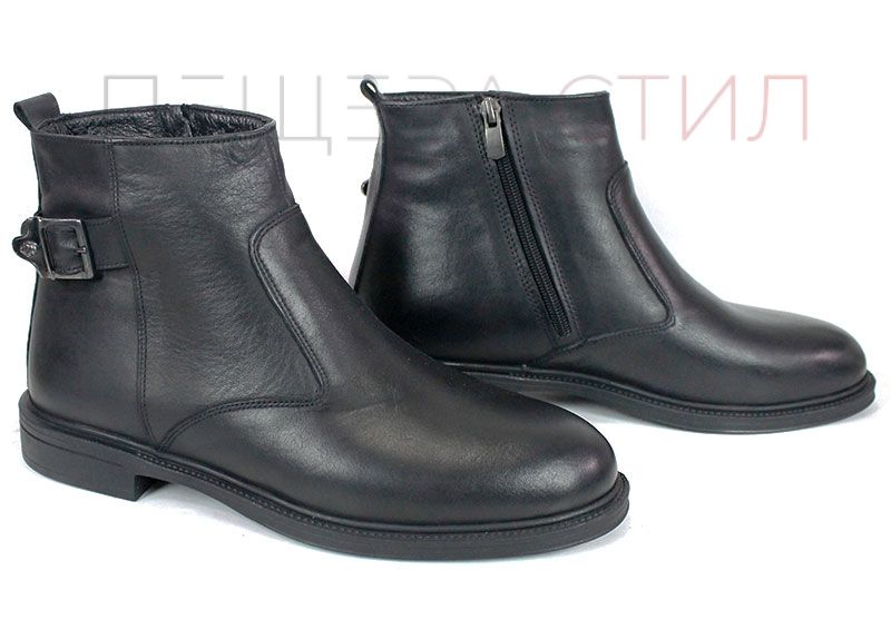 Botine negre pentru bărbați din piele naturală, cu fermoar și șireturi, talpă clasică din cauciuc cu prindere de iarnă și căptușeală groasă și caldă. Stabil, confortabil și potrivit pentru zilele reci.