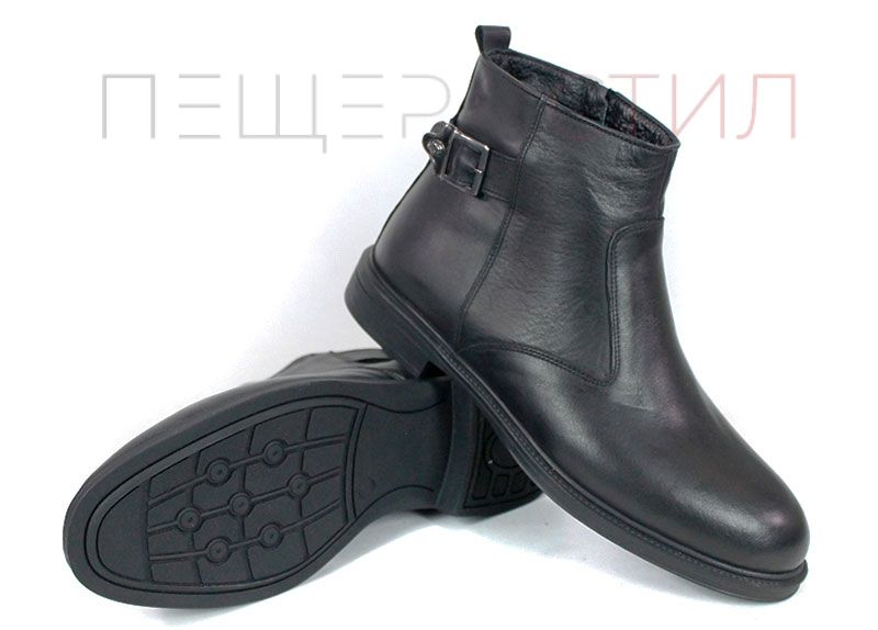 Cizme barbatesti din piele naturala de culoare neagra - model 334112