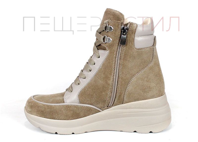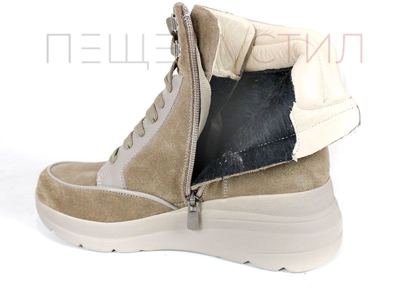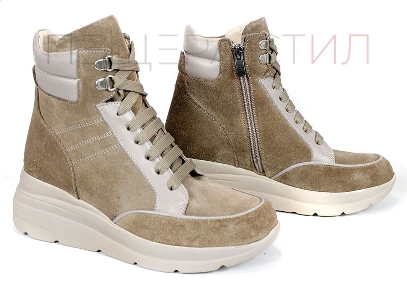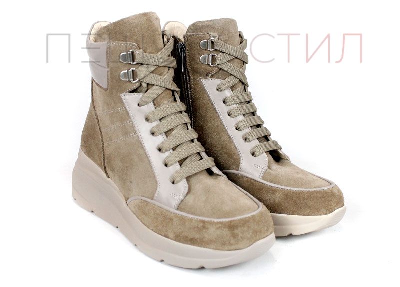 Aceste cizme de damă îmbină un stil sportiv modern cu eleganța, datorită modelului croc și elementelor suplimentare din piele naturală lacuită. Modelul oferă confort printr-un fermoar și șireturi care asigură îmbrăcarea ușoară și stabilitatea piciorului.