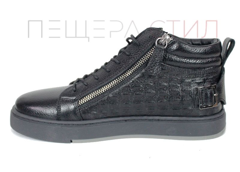 Cizme barbatesti din piele naturala de culoare neagra - model 334112