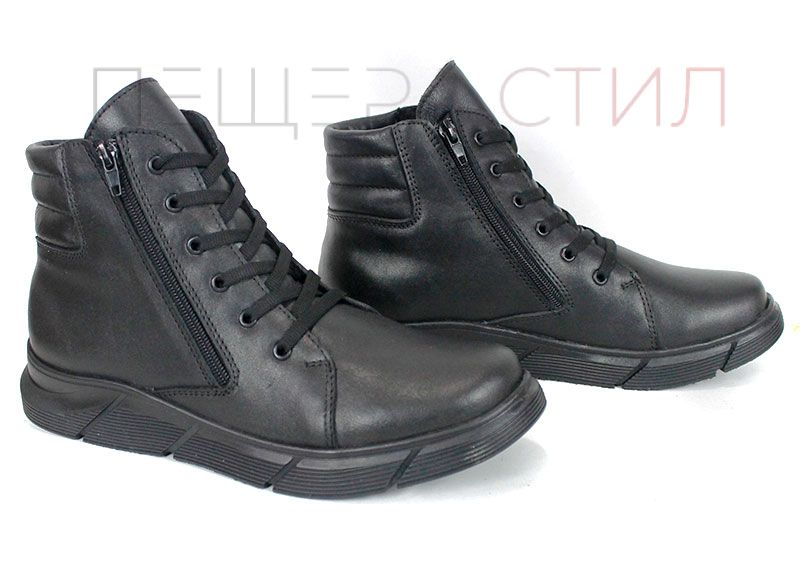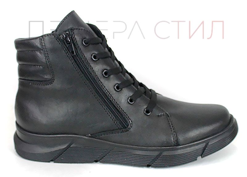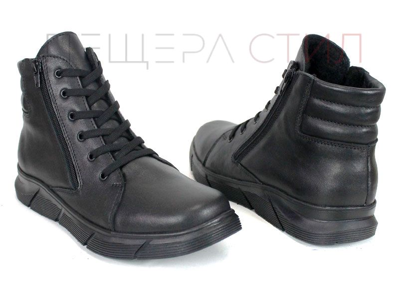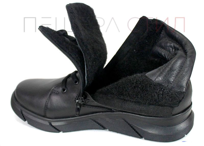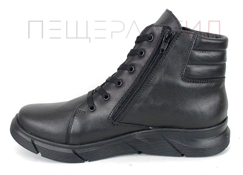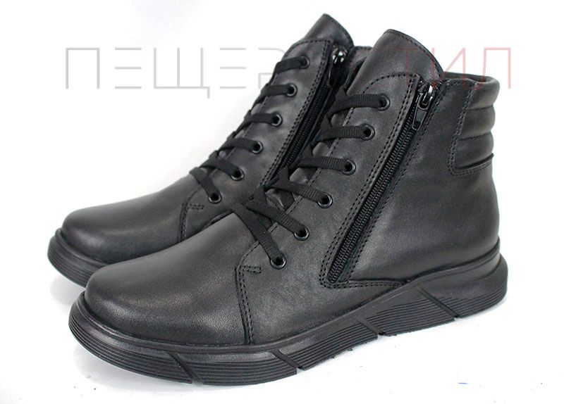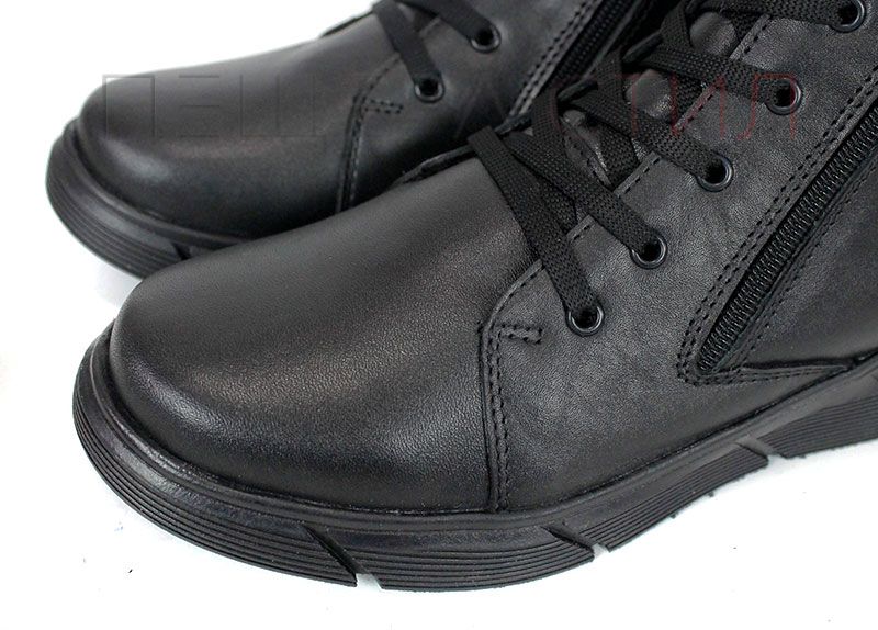 Botine negre pentru bărbați din piele naturală, cu fermoar și șireturi, talpă clasică din cauciuc cu prindere de iarnă și căptușeală groasă și caldă. Stabil, confortabil și potrivit pentru zilele reci.