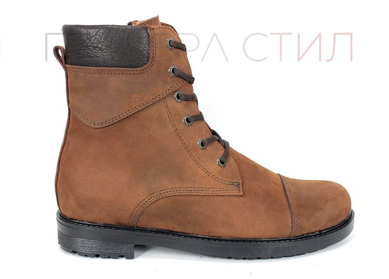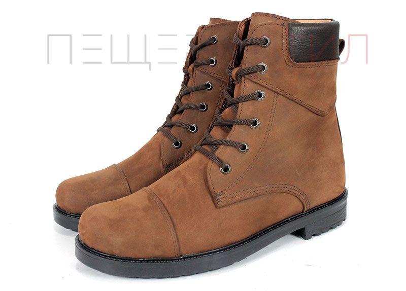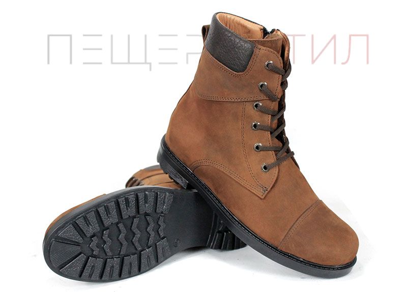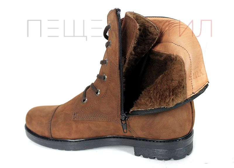 Botine pentru bărbați din piele naturală maro „nebună” cu fermoar și șireturi, talpă clasică din cauciuc cu prindere de iarnă și căptușeală groasă și caldă. Stabil, confortabil și potrivit pentru zilele reci.