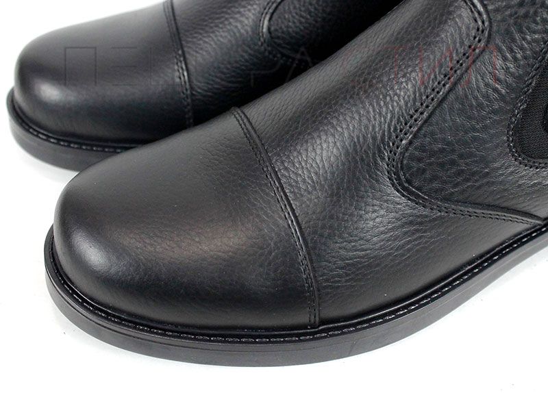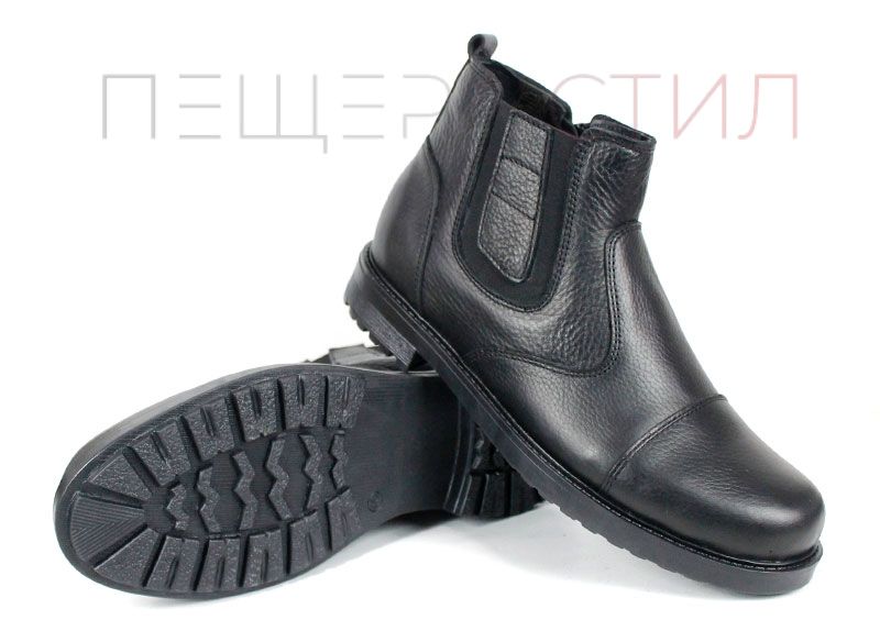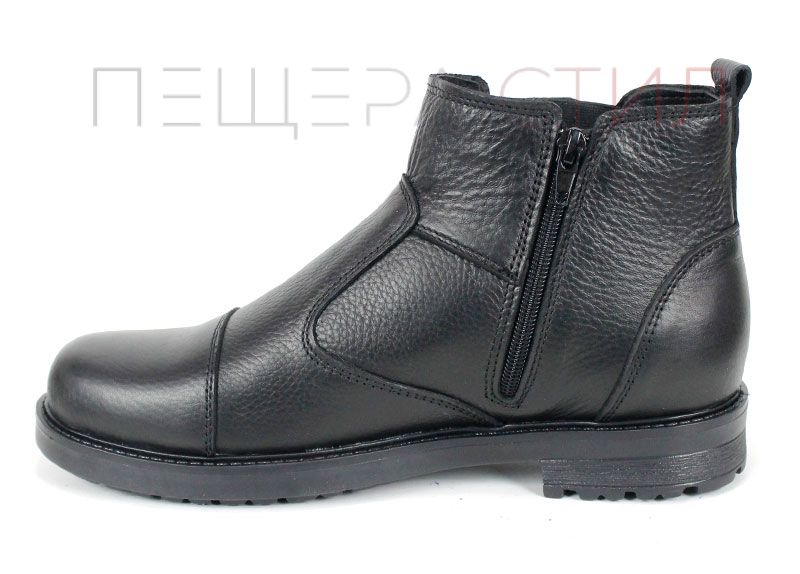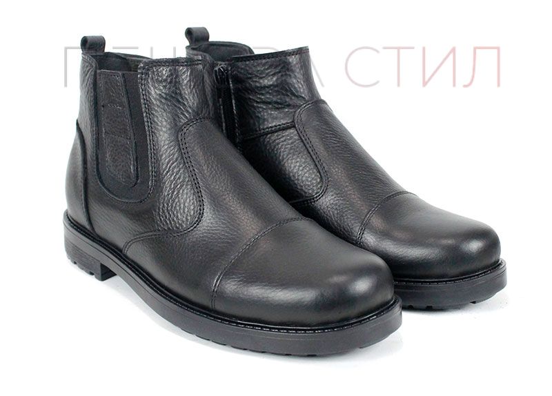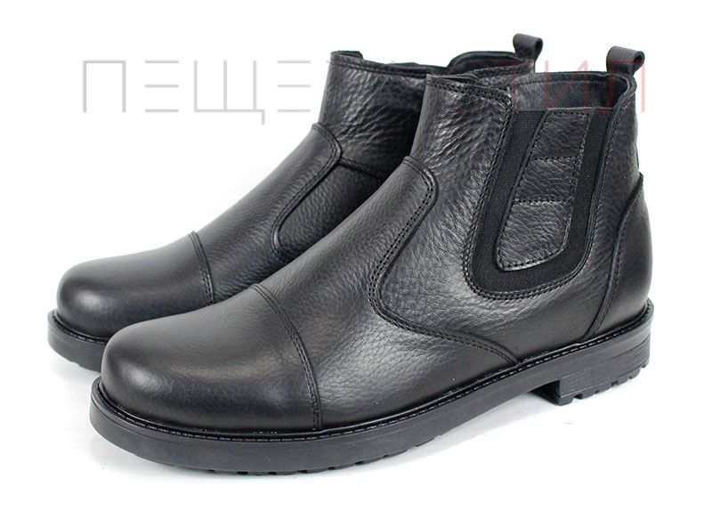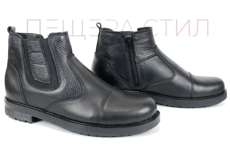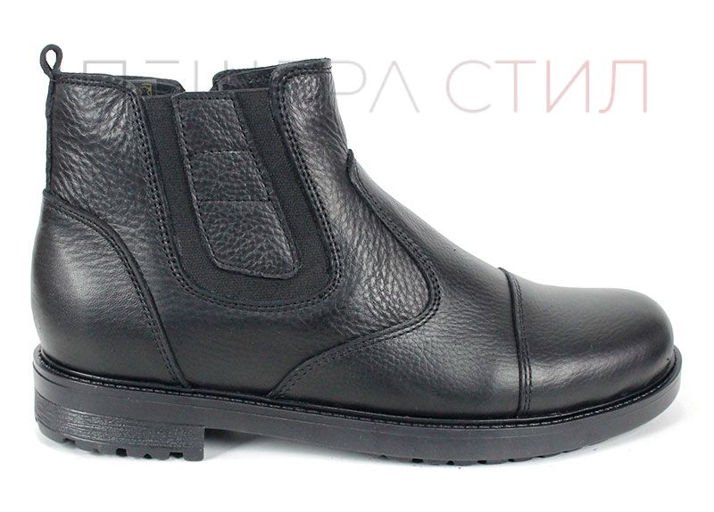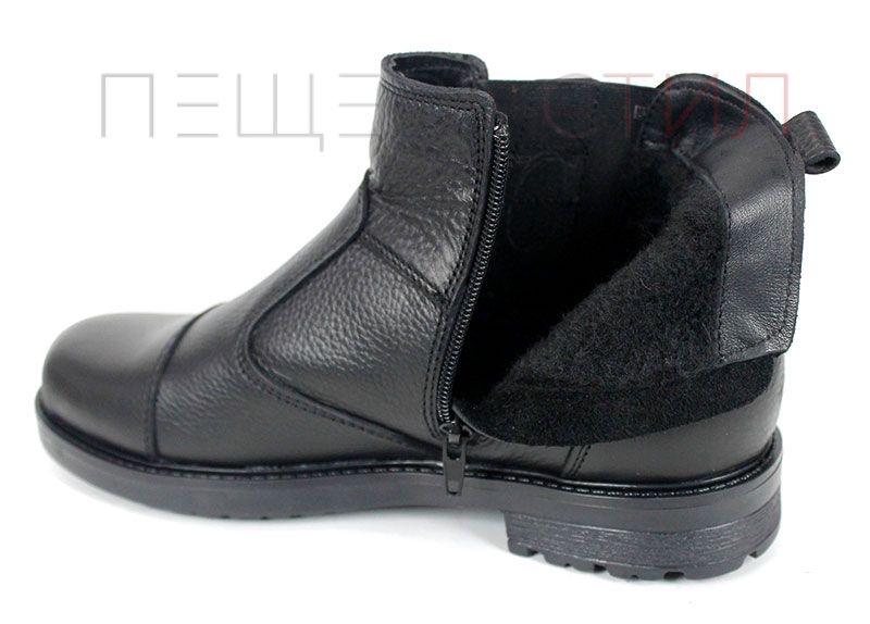 Ghete bărbătești sport-elegante Forte Passo din piele naturală neagră, cu interior călduros tip blăniță. Modelul este prevăzut cu elastic exterior lat pentru fixare optimă și fermoar interior pentru încălțare rapidă. Talpă clasică, ușoară, cu toc jos și profil de iarnă.
