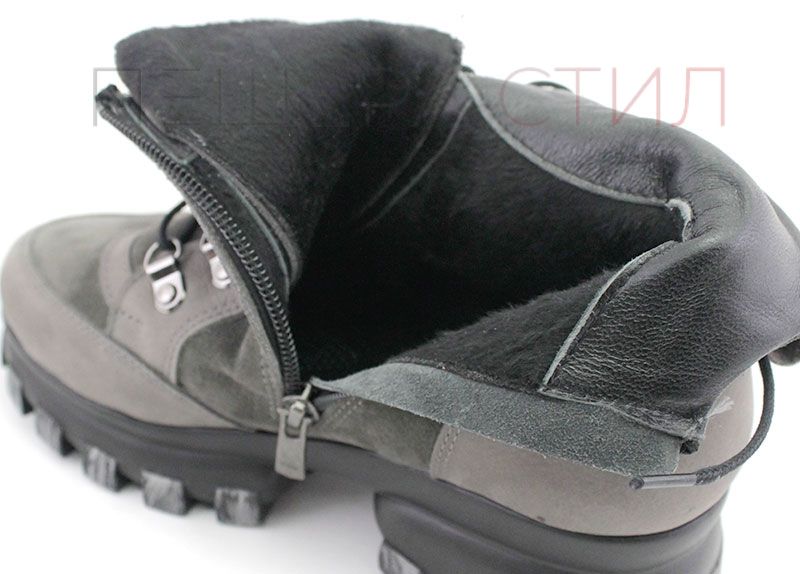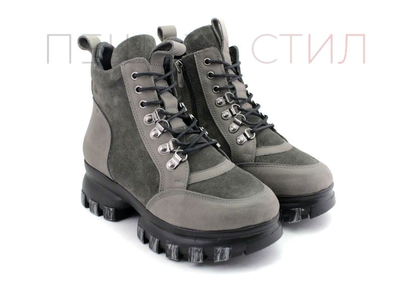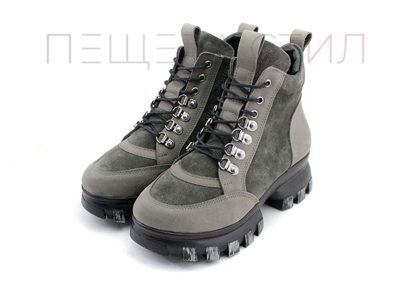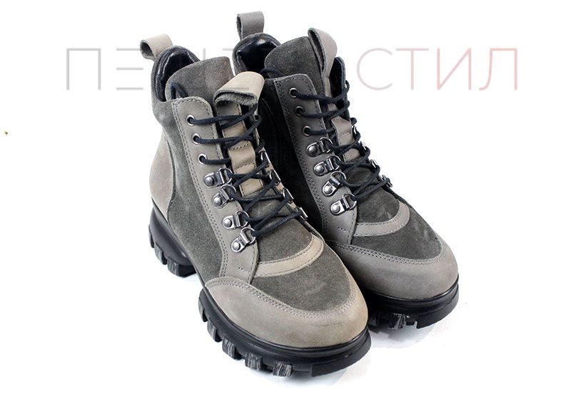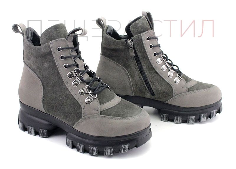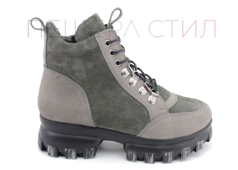 Ghete casual de dama confectionate din piele intoarsa si piele naturala pe o platforma mijlocie cu aspect modern. Ghetele au fermoar și șireturi, ceea ce ajută la îmbrăcat rapid și ușor.
