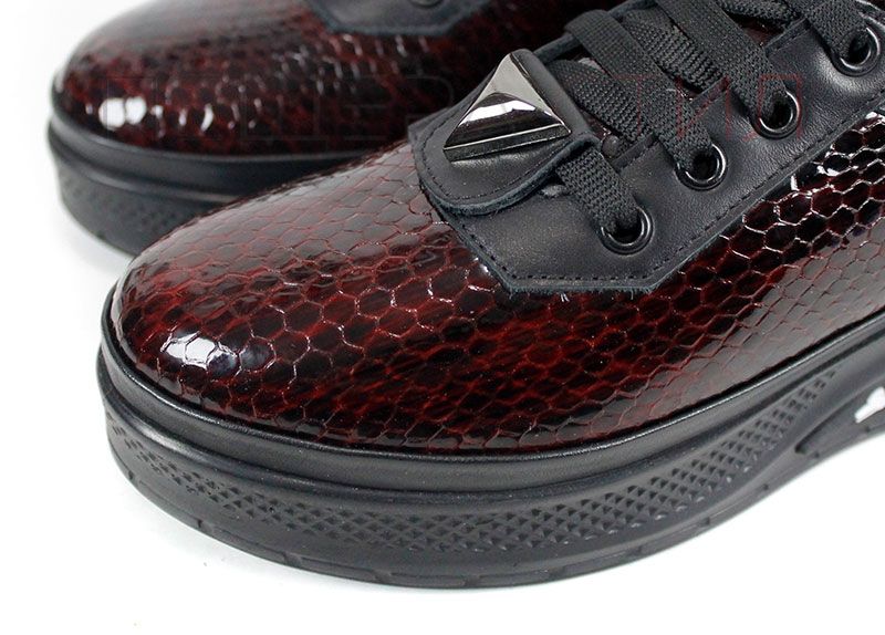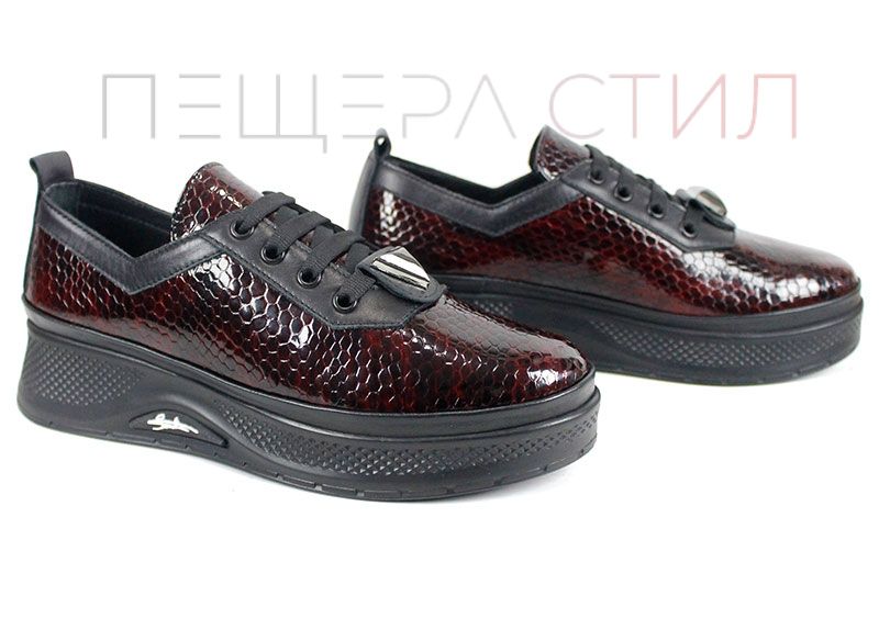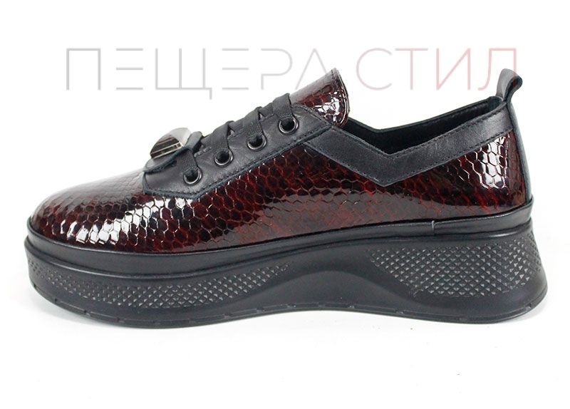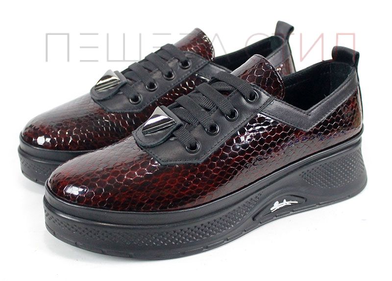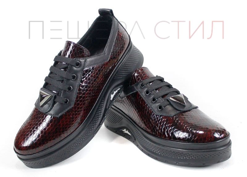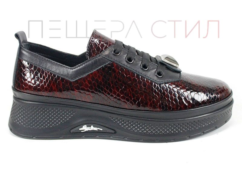 Scala Moda în bordo – pantofi casual damă din lac presat și piele naturală. Fashion accent cu accesoriu metalic și platformă modernă pentru un stil urban chic.