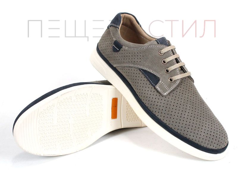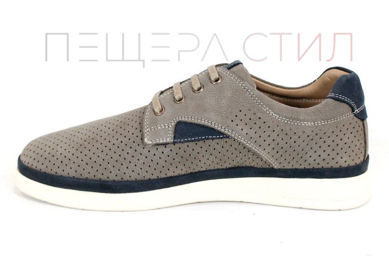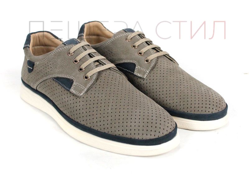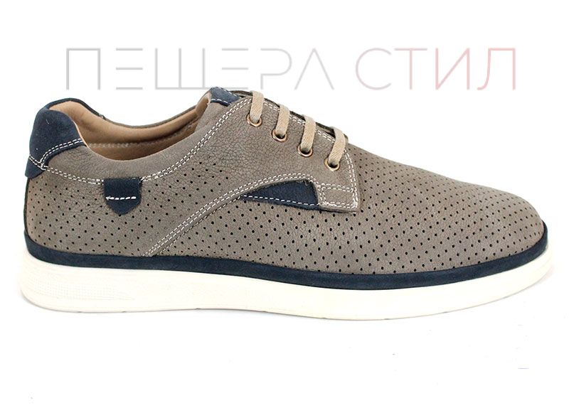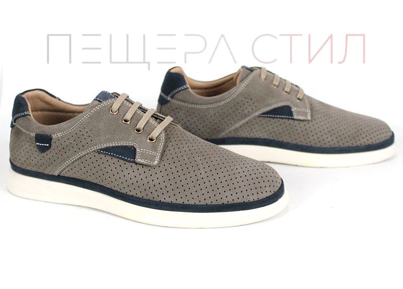 Urban Crest sunt pantofi de vară pentru bărbați, realizați din nabuc natural în nuanță gri vizon, cu perforații fine și accente contrastante bleumarin, oferiind un aspect modern și confort zilnic.