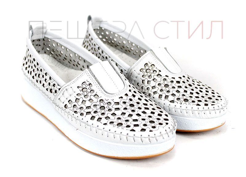 Pantofi de vară pentru femei, foarte ușori și comozi, realizați din piele naturală perforată, cu branț moale cu spumă memory și talpă joasă, ideală pentru purtare zilnică
