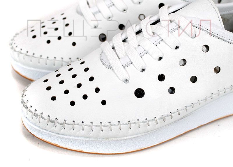 Pantofi de vară Elia Move pentru femei, realizați din piele naturală albă, fără căptușeală, cu perforații pentru aerisire, branț din piele cu spumă memory și talpă ușoară pentru confort zilnic