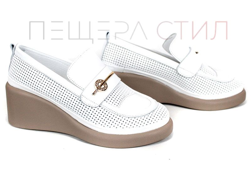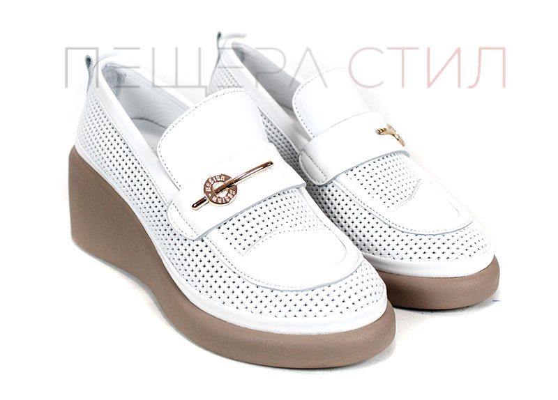 City Aura – pantofi de damă de vară din piele naturală albă cu platformă tip pană