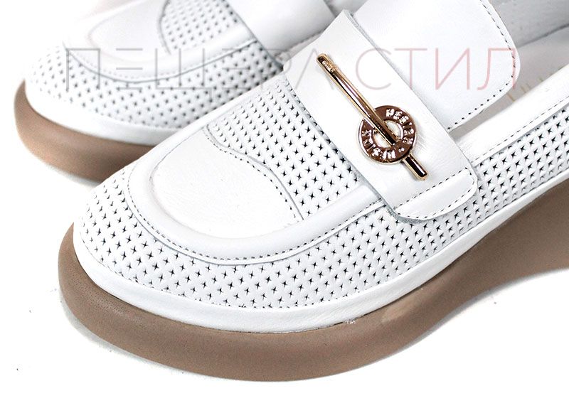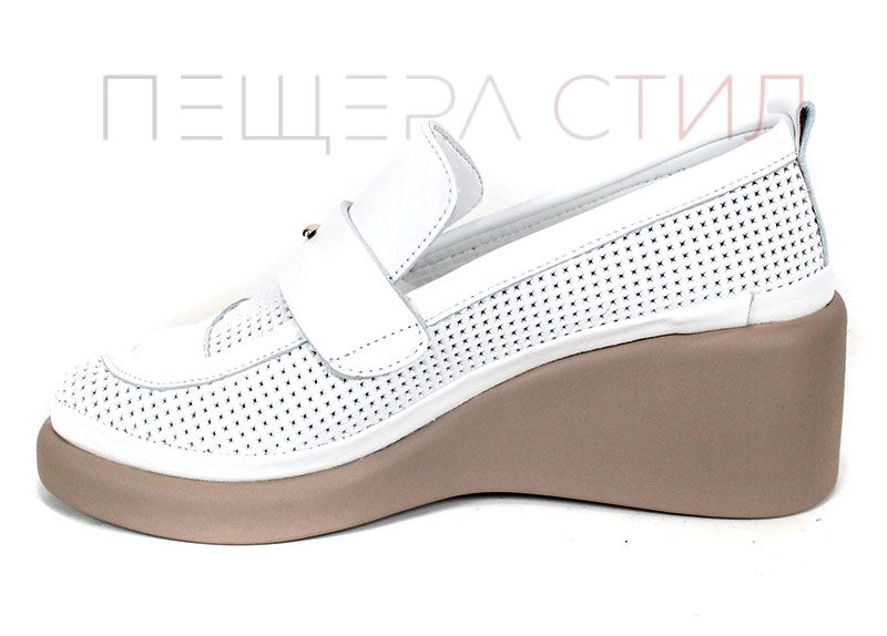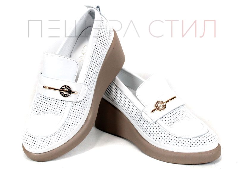 City Aura sunt pantofi de damă de vară realizați din piele naturală albă, cu perforații fine, ce îmbină eleganța urbană cu un confort excelent. Platforma tip pană, ușoară, în nuanță bej închis, oferă stabilitate și alungește vizual silueta, iar căptușeala și branțul din piele naturală asigură confort pe tot parcursul zilei.