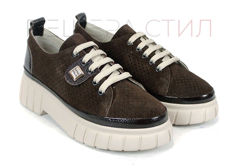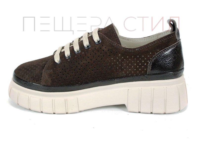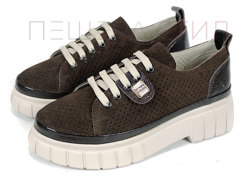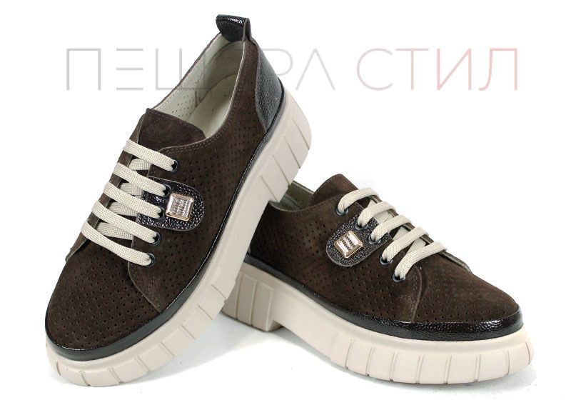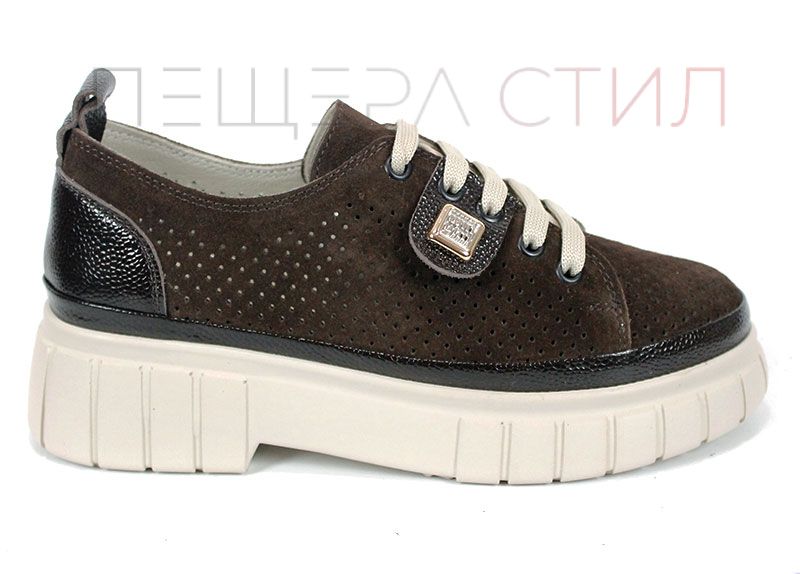 Modelul Nova Grace îmbină armonios stilul modern cu materialele de calitate și confortul necesar purtării zilnice. Partea superioară este realizată din velur natural într-o nuanță elegantă de maro închis, decorată cu perforații fine care permit o bună circulație a aerului.