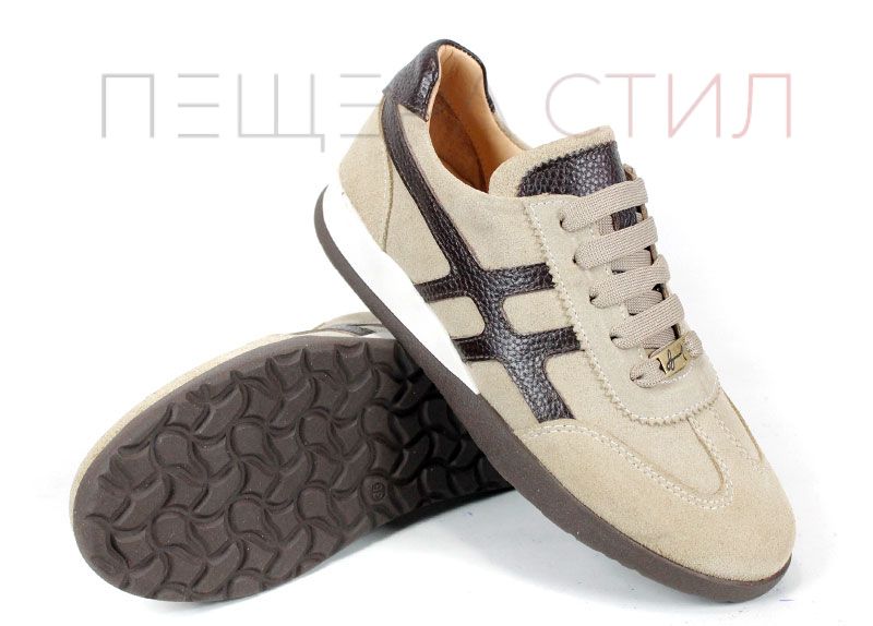 Partea superioară este realizată din velur natural în nuanță vizon, un material plăcut la atingere care oferă pantofilor un aspect rafinat. Detaliile decorative din piele maro închis cu efect exotic adaugă personalitate și stil designului.