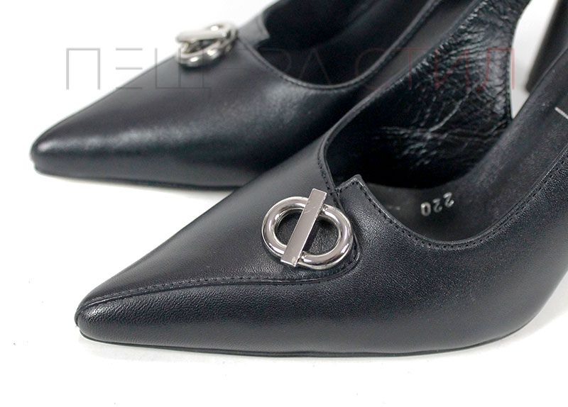 Modelul Sienna Flow reprezintă o pereche de sandale elegante pentru femei realizate din piele naturală neagră. Designul cu vârf închis, toc mediu și bareta reglabilă la călcâi oferă stabilitate și eleganță, fiind potrivit atât pentru ținute business, cât și pentru evenimente speciale.