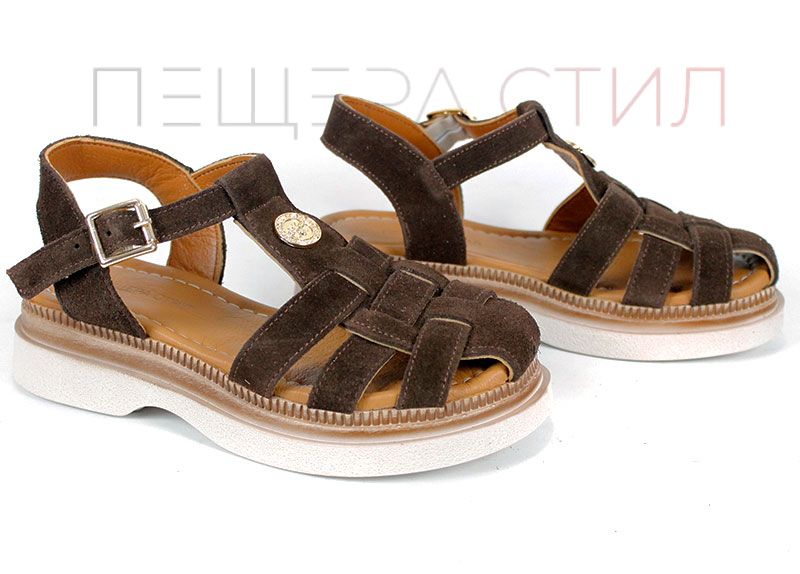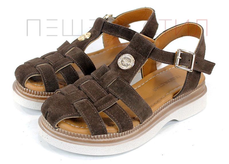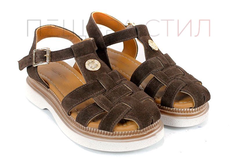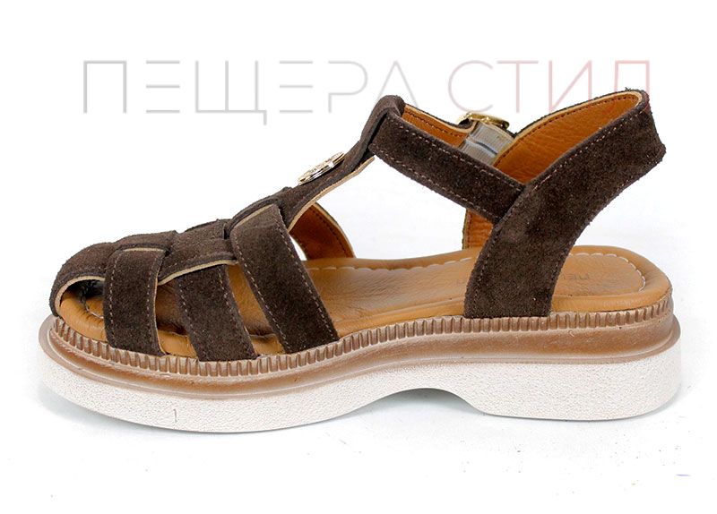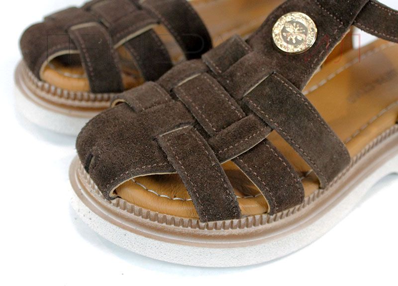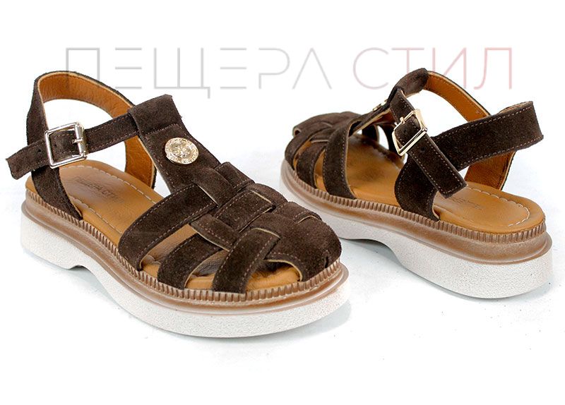 Realizate din velur natural în nuanță maro închis, aceste sandale oferă un aspect practic și ușor de integrat în ținutele de zi cu zi. Designul cu mai multe barete oferă susținere și fixare mai bună a piciorului.